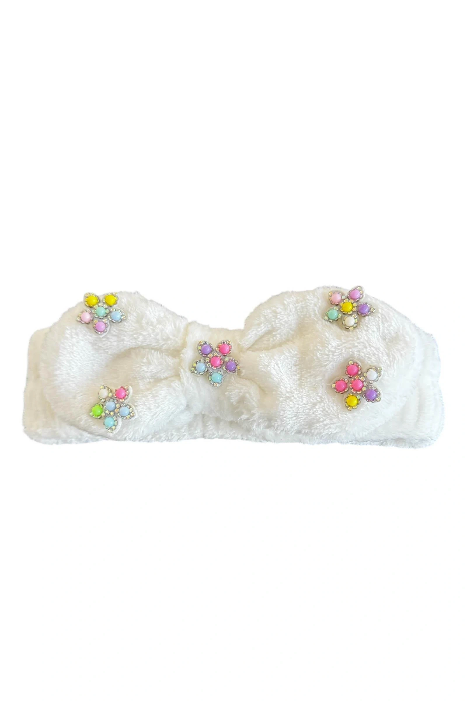 Beyaz Renk Kurdele Figürlü Çiçek Detaylı Peluş Saç Bandı