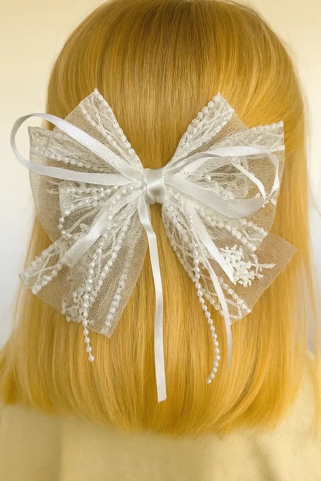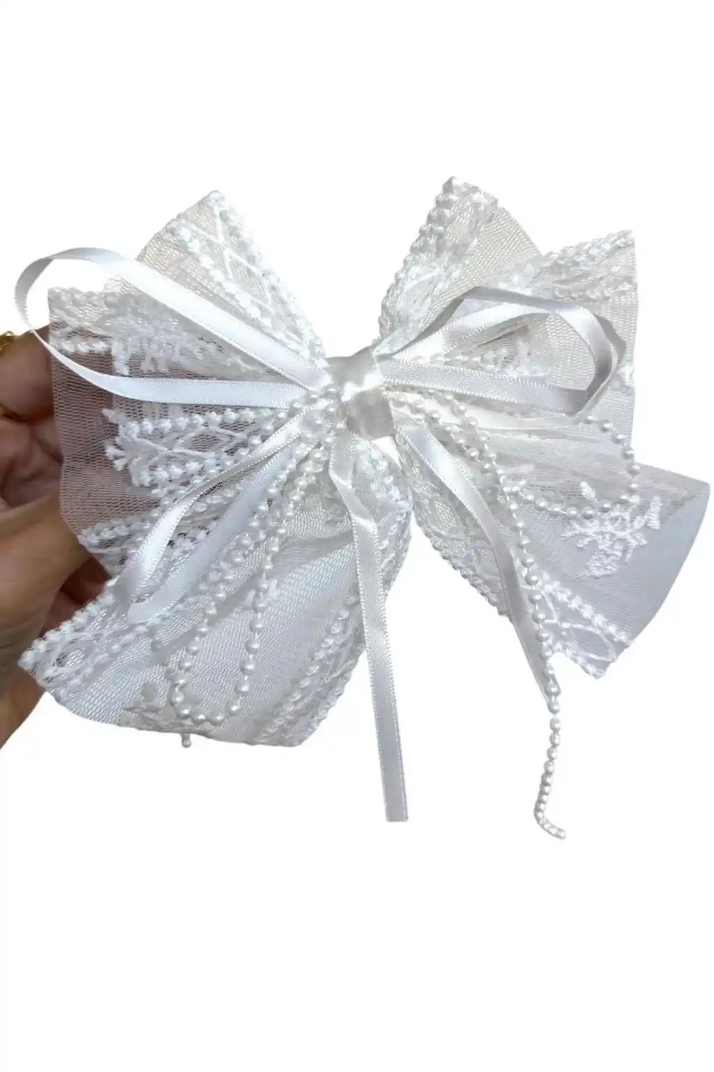 Beyaz Renk Kurdele Figürlü İnci Detaylı Otomat Toka