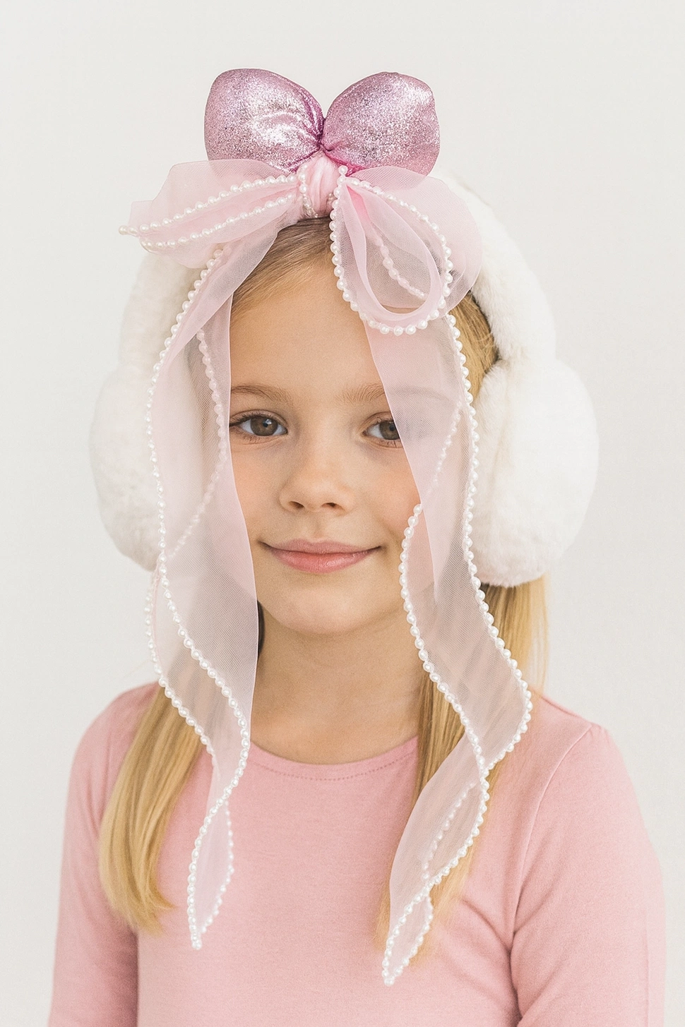 Beyaz Renk Kurdele Figürlü Peluş Kulaklık