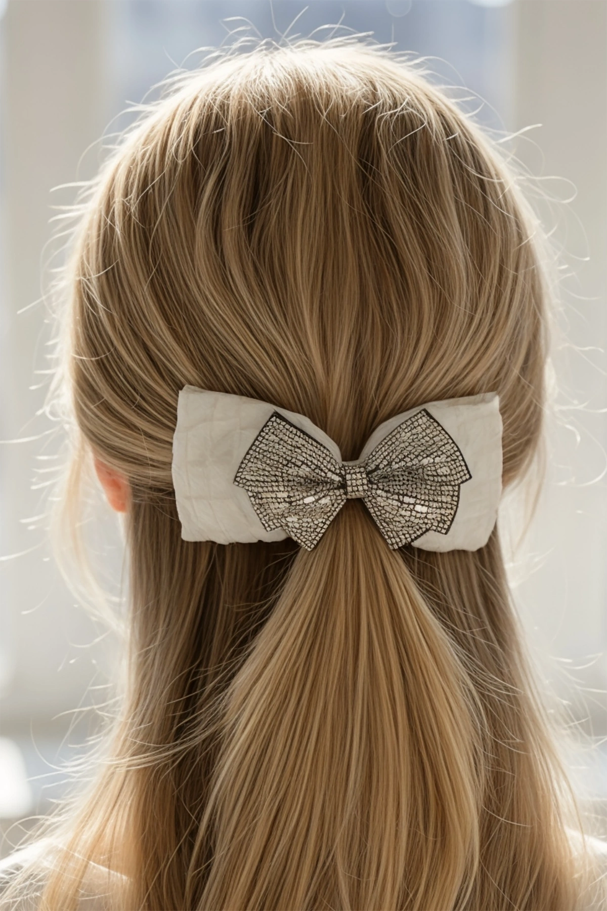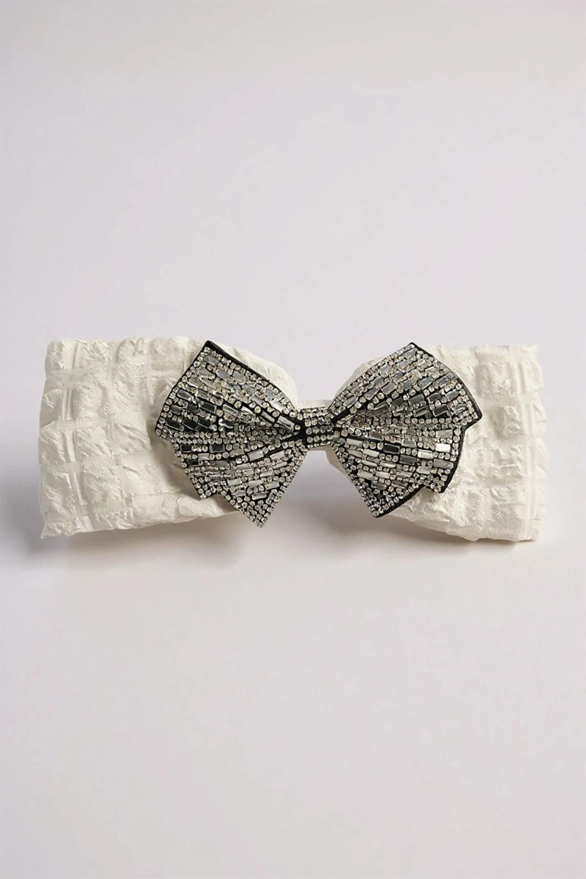 Beyaz Renk Kurdele Figürlü Taş Detaylı Otomat Toka