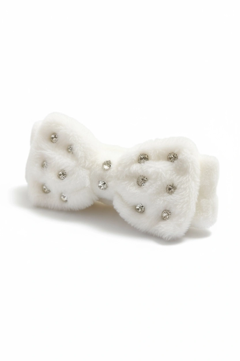 Beyaz Renk Kurdele Figürlü Taş Detaylı Peluş Saç Bandı
