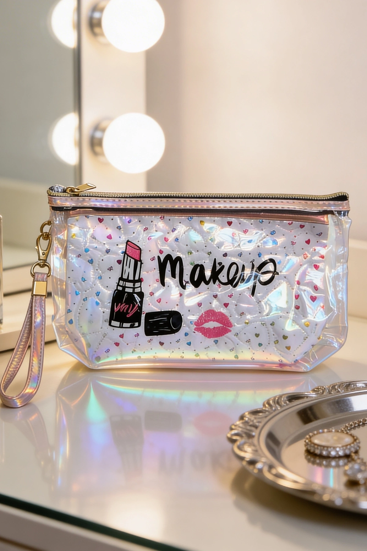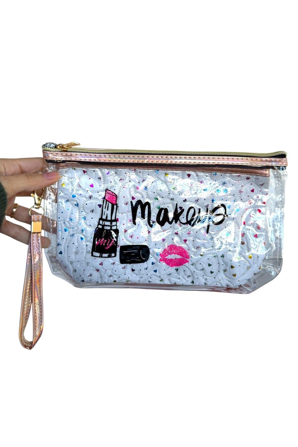Beyaz Renk Makeup Yazılı Makyaj Çantası