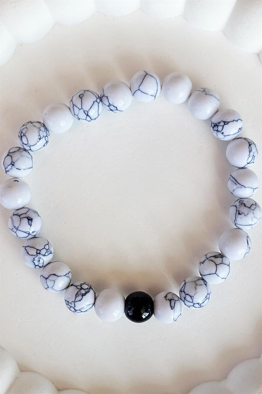 Beyaz Renk Mermer Desenli Erkek Bileklik
