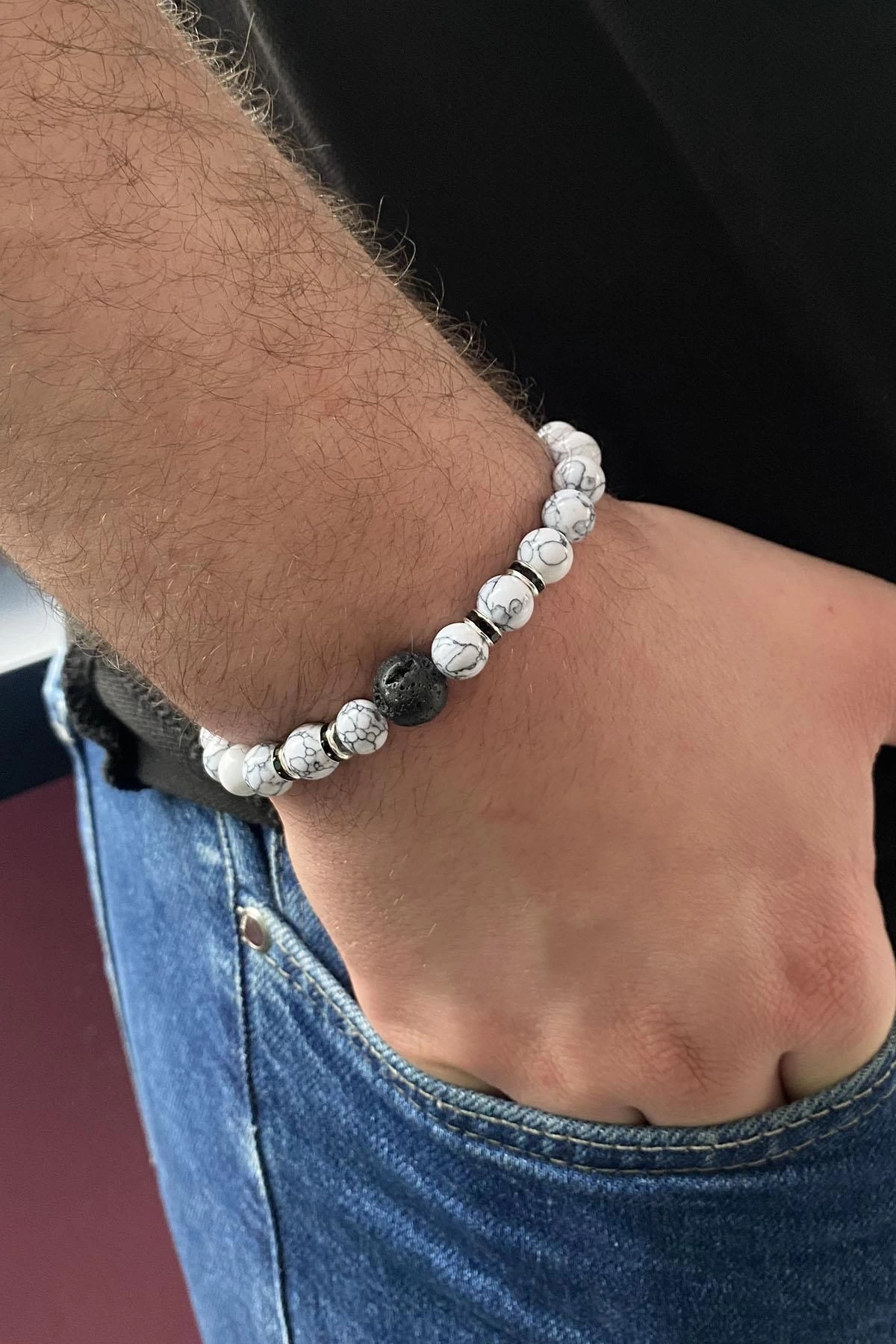 Beyaz Renk Mermer Desenli Erkek Bileklik