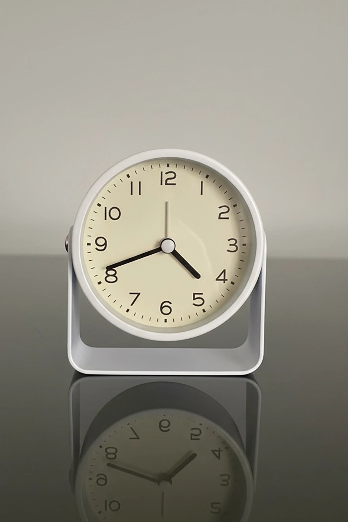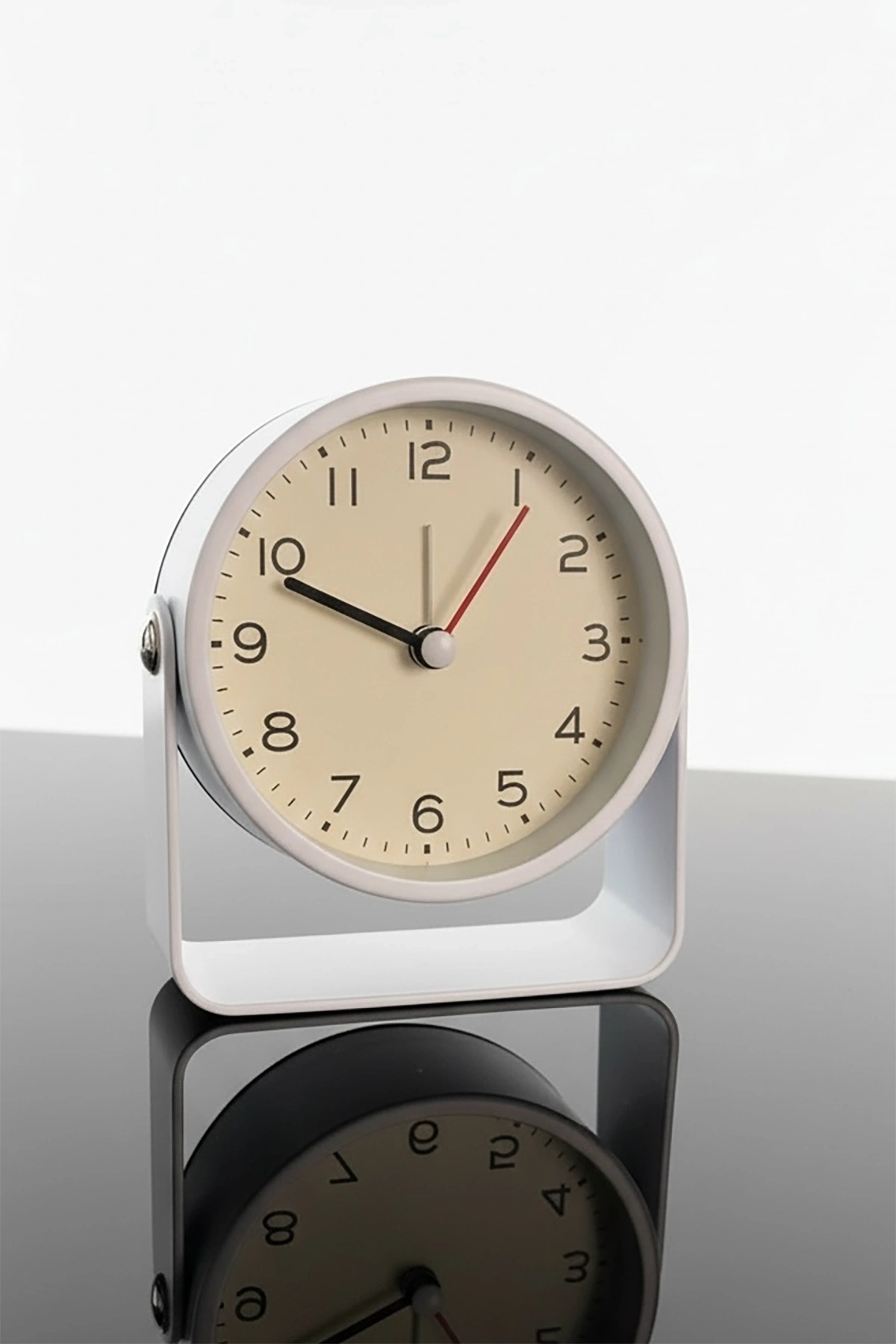 Beyaz Renk Mini Dekoratif Alarmlı Yuvarlak Masa Saati