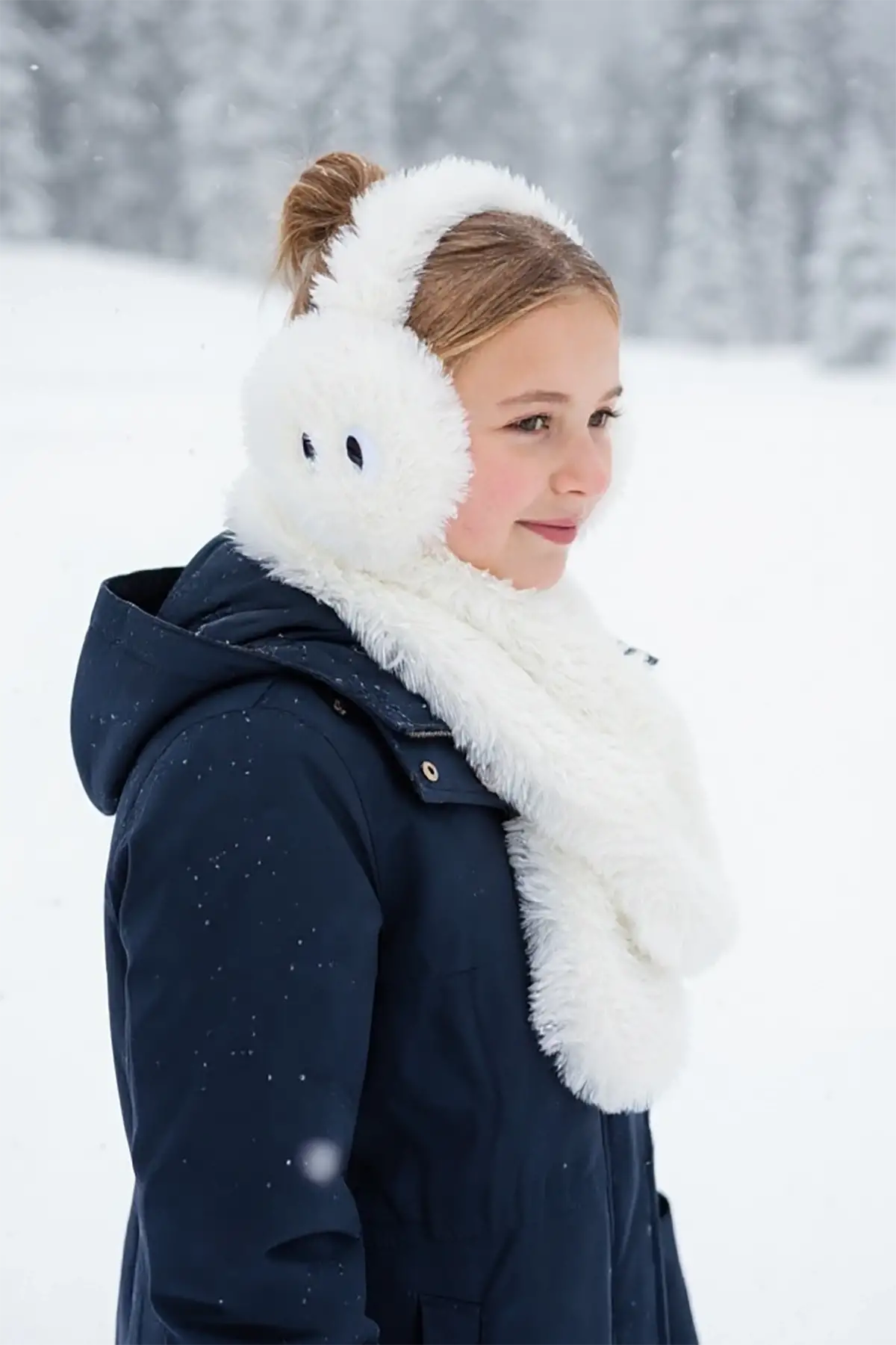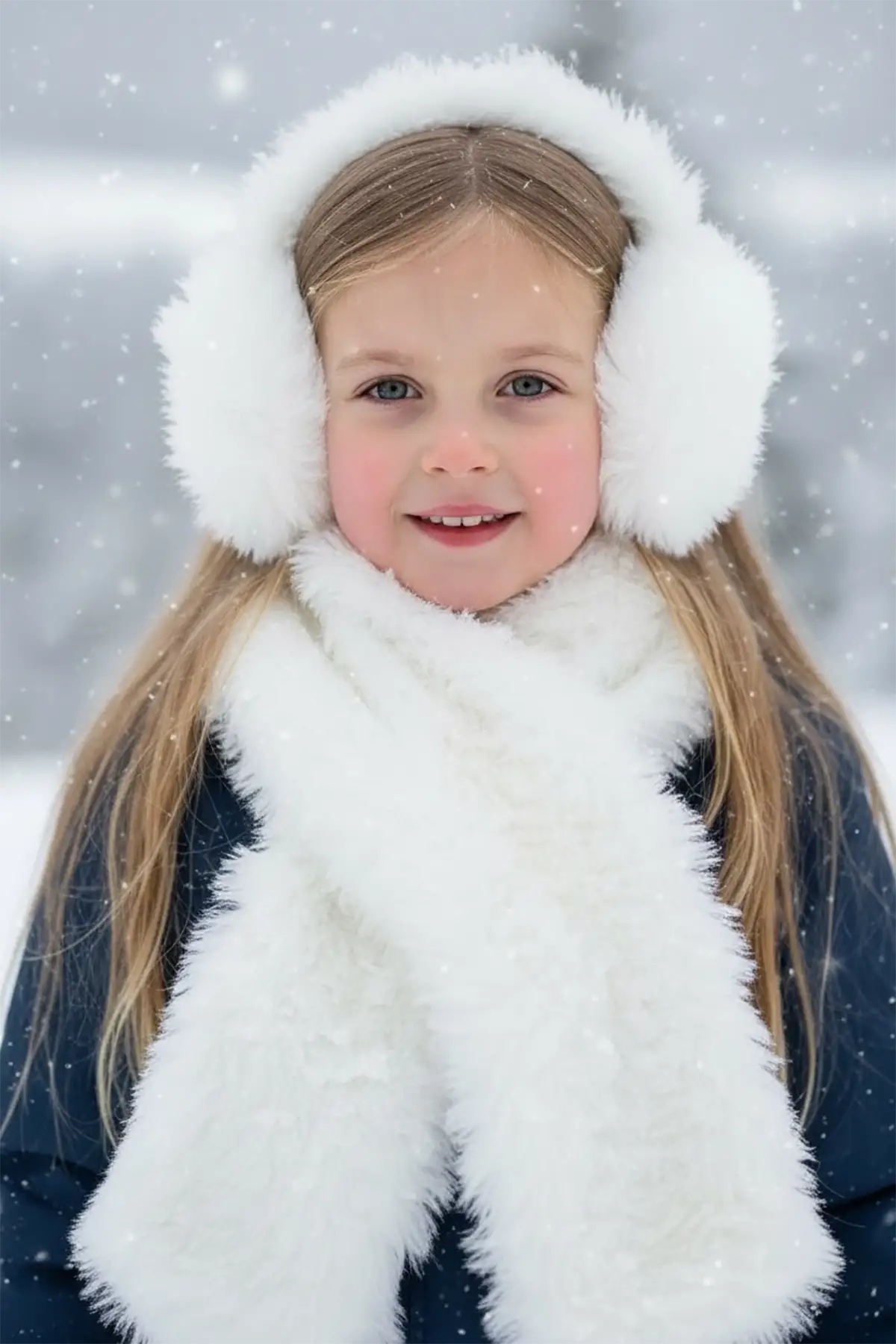 Beyaz Renk Peluş Atkı Ve Kulaklık Set