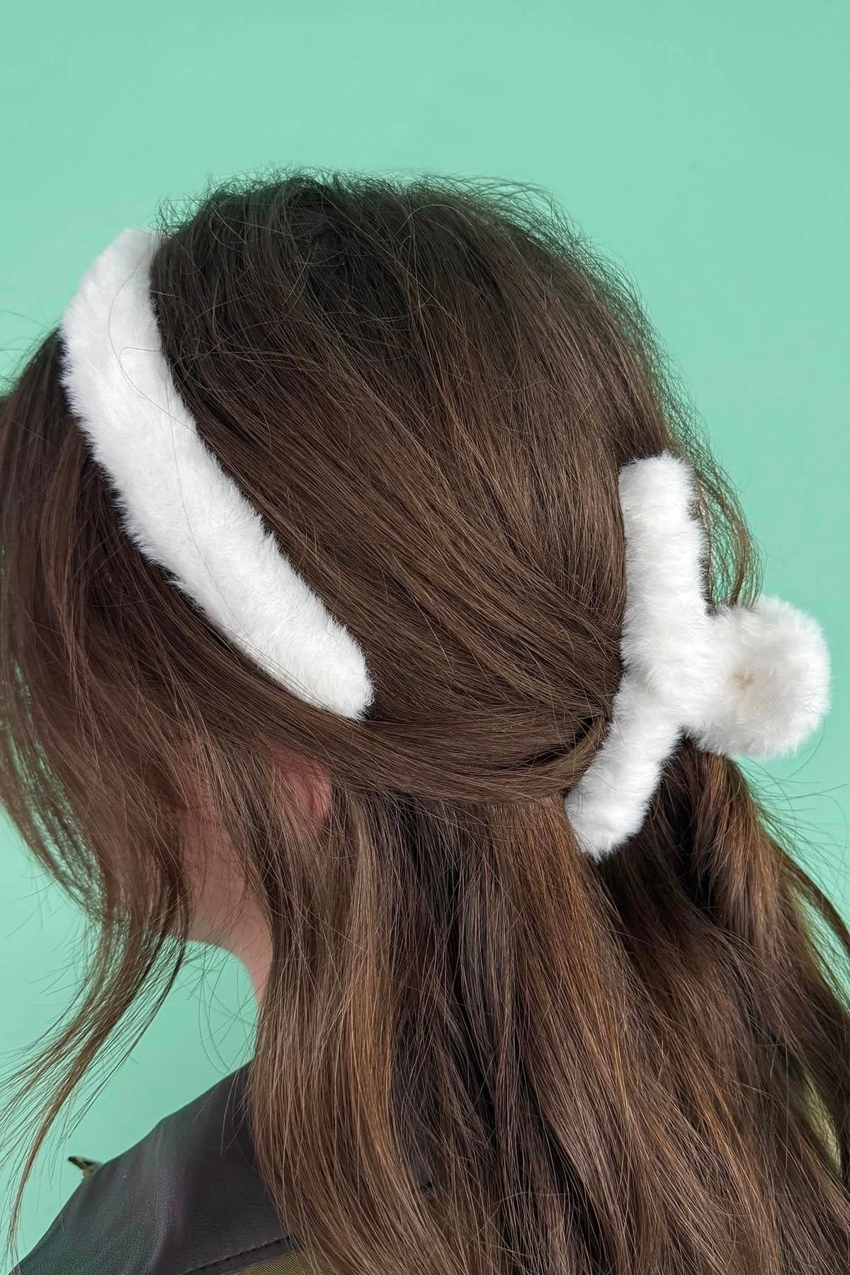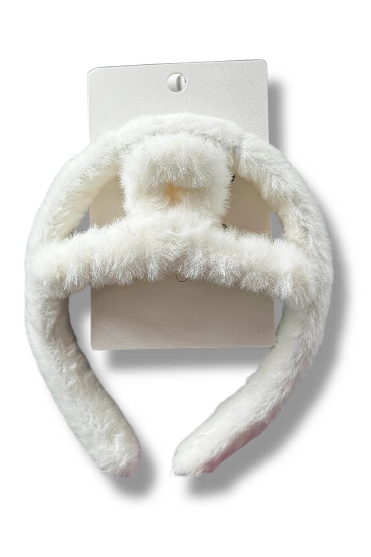 Beyaz Renk Peluş Mandal Toka Ve Taç Set
