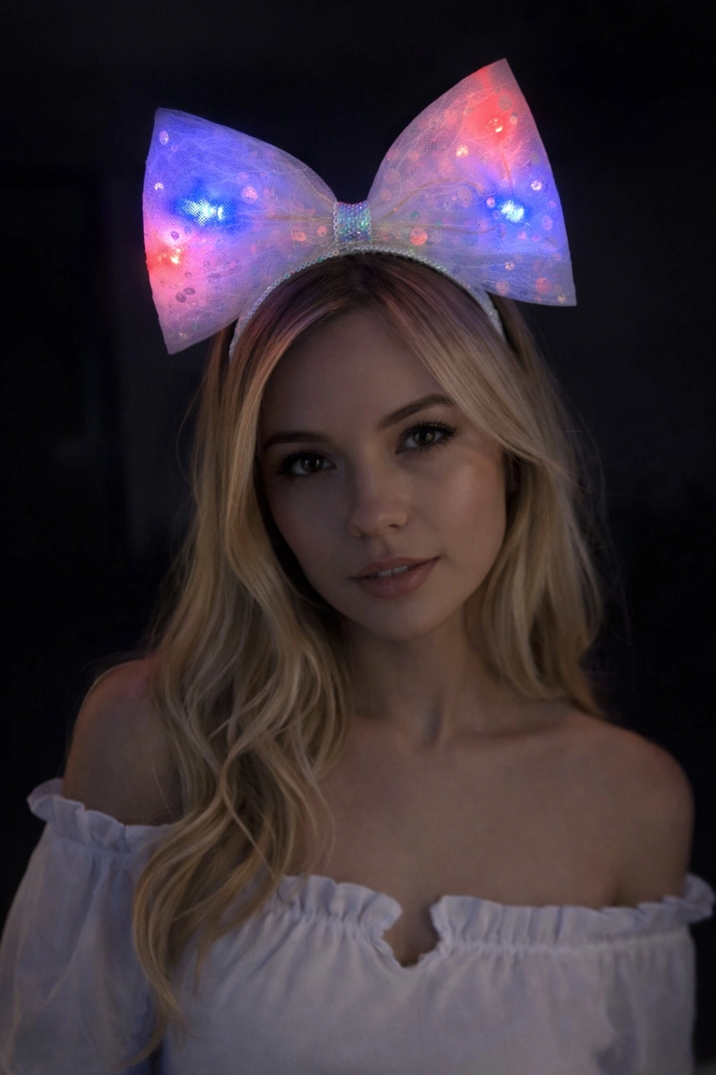 Beyaz Renk Pullu Kurdele Figürlü Işıklı Taç