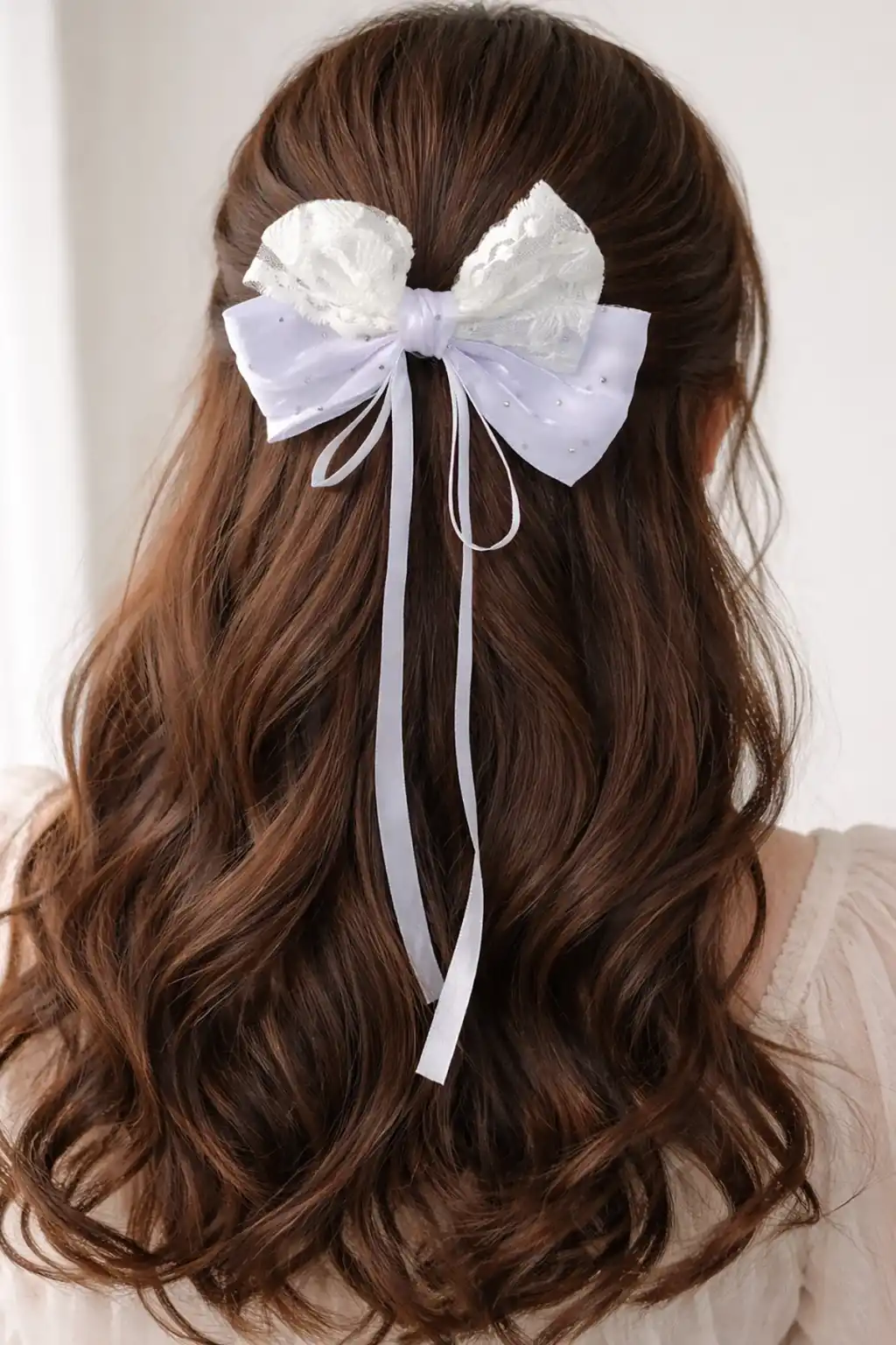 Beyaz Renk Kurdele Figürlü Taş Detaylı Otomat Toka