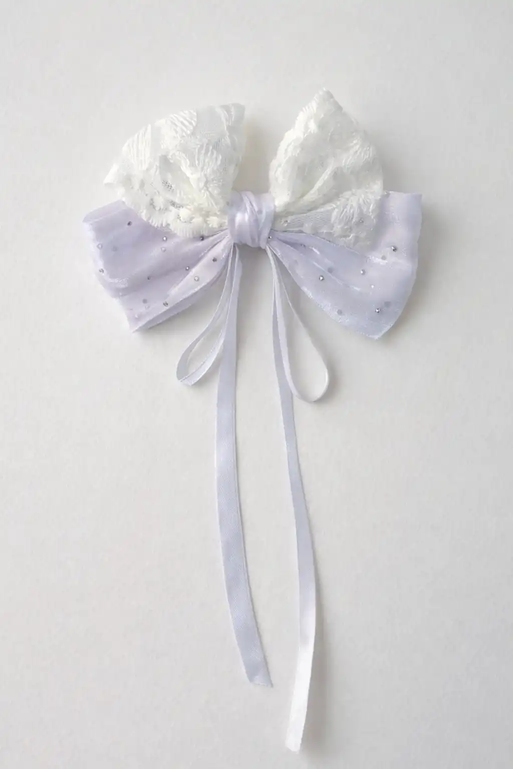Beyaz Ve Mavi Renk Kurdele Figürlü Taş Detaylı Otomat Toka