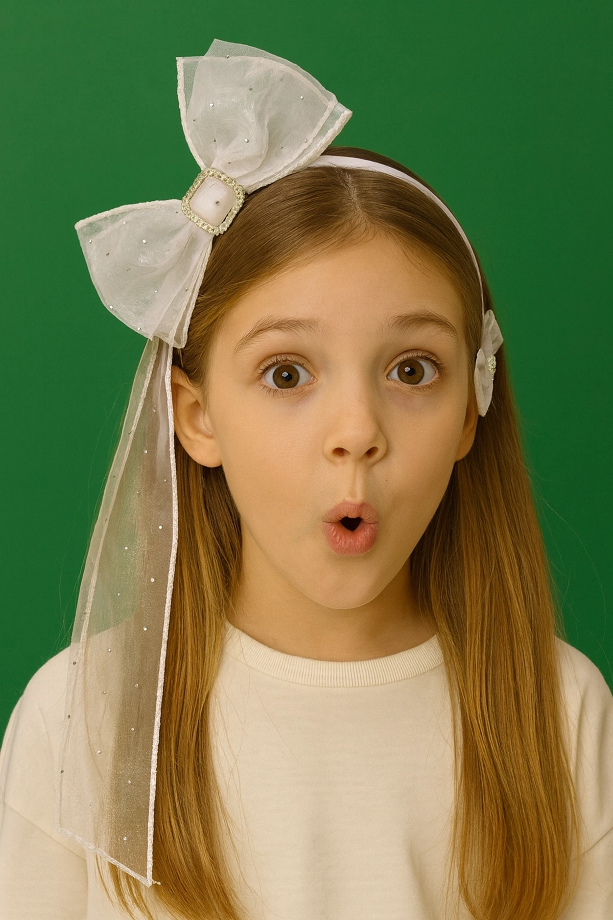 Beyaz Renk Pullu Kurdele Figürlü Işıklı Taç