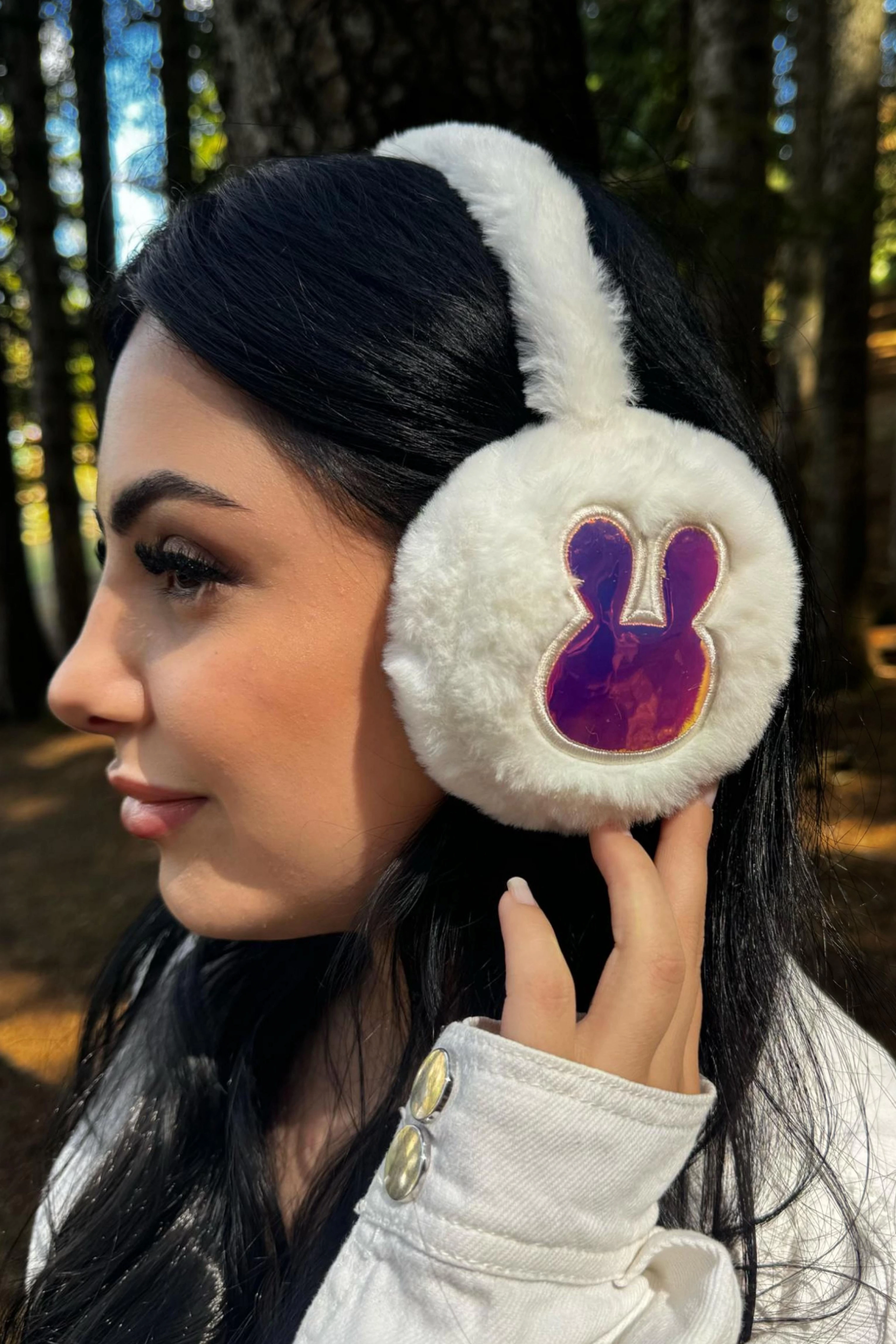 Beyaz Renk Tavşan Figürlü Peluş Kulaklık