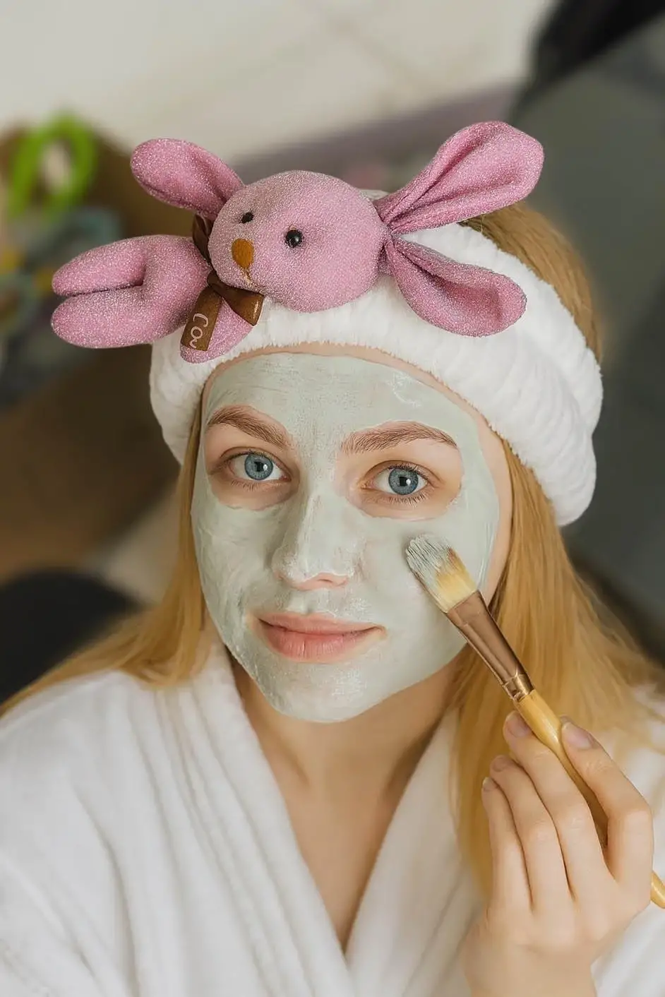 Beyaz Renk Tavşan Figürlü Peluş Saç Bandı