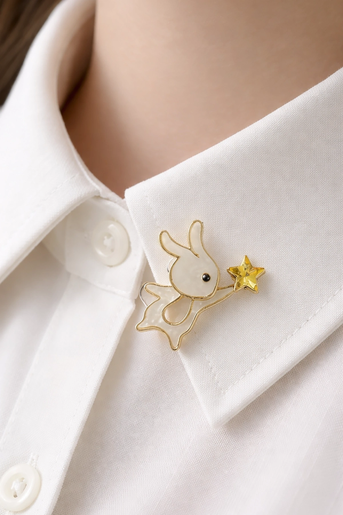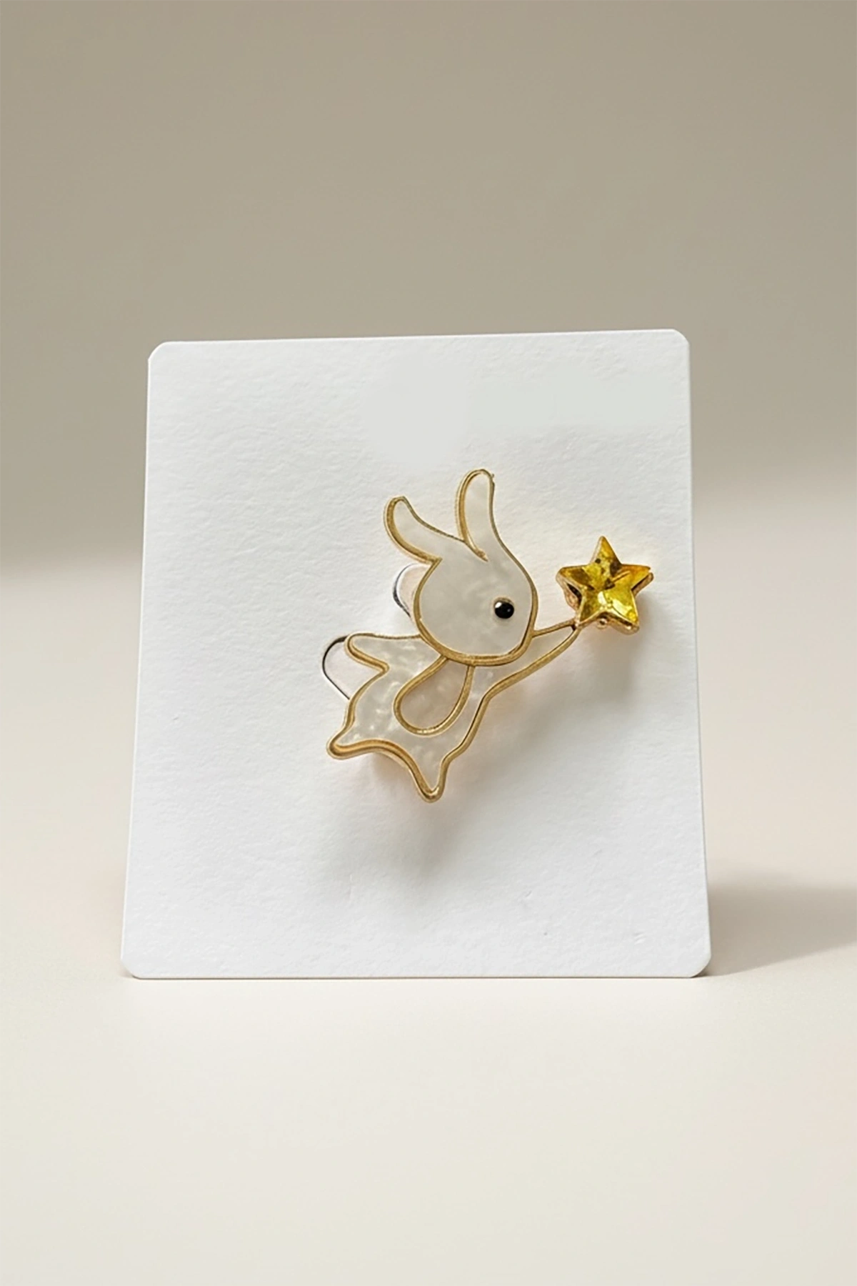 Beyaz Renk Tavşan Figürlü Taşlı Broş