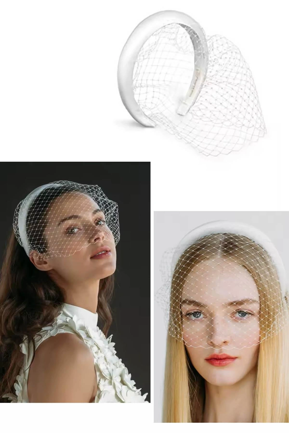 Beyaz Renk Tül Detaylı Saç Aksesuarı/ Nikah Düğün Gelin Taç