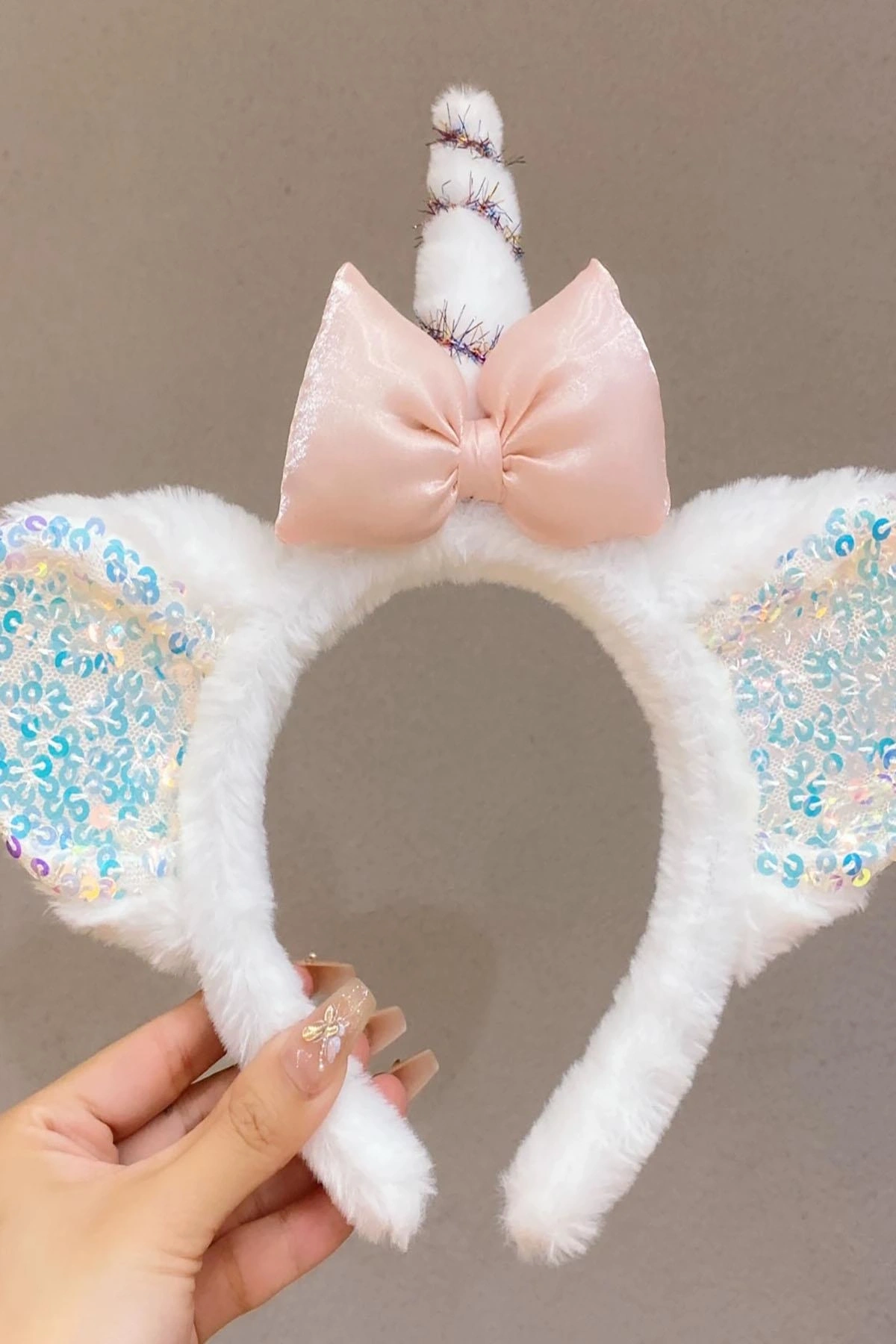 Beyaz Renk Unicorn Figürlü Peluş Taç