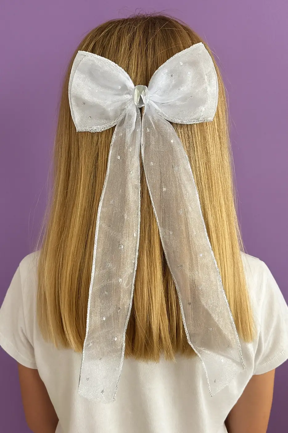 Beyaz Renk Yıldız Detaylı Taşlı Kurdele Otomat Toka