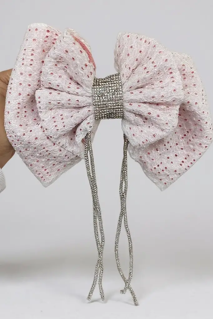 Beyaz Ve Pembe Renk Kurdele Figürlü Taş Detaylı Otomat Toka