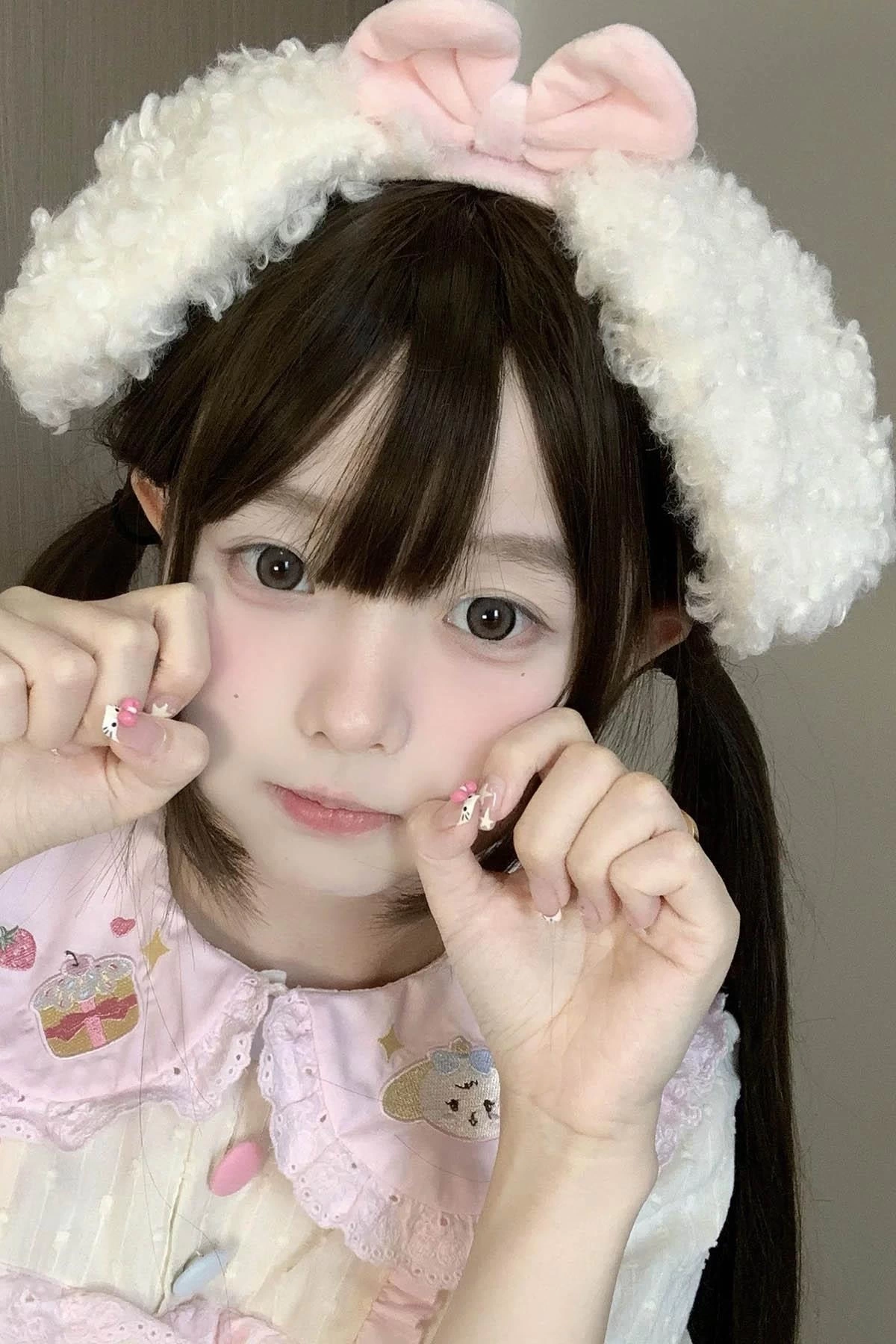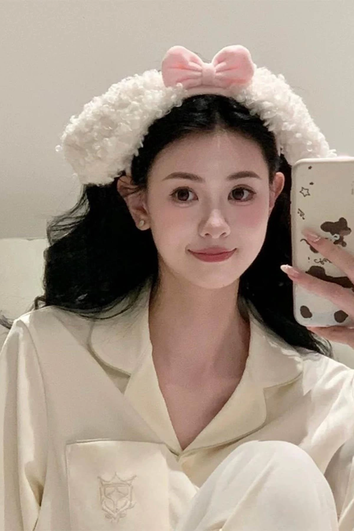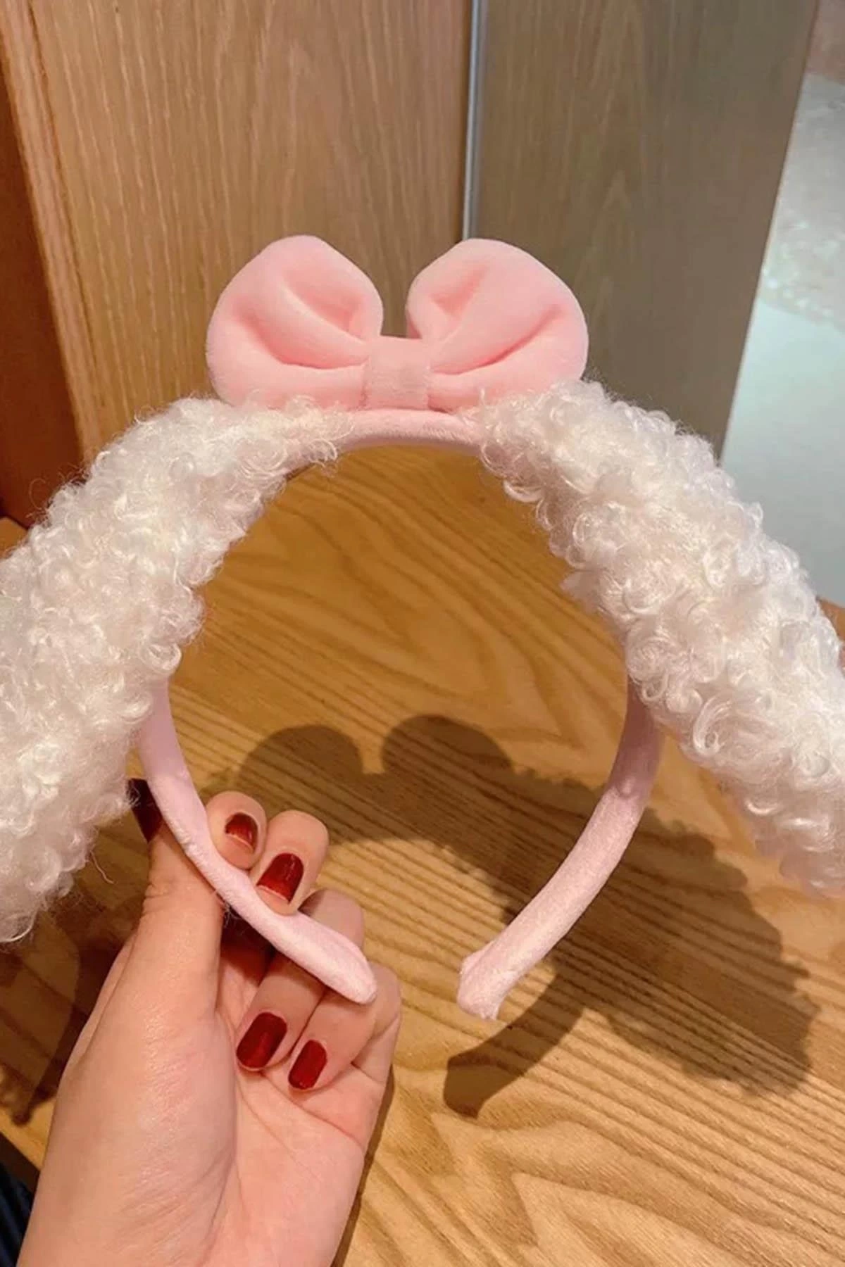 Beyaz Ve Pembe Renk Kurdele Figürlü Kulak Detaylı Peluş Taç