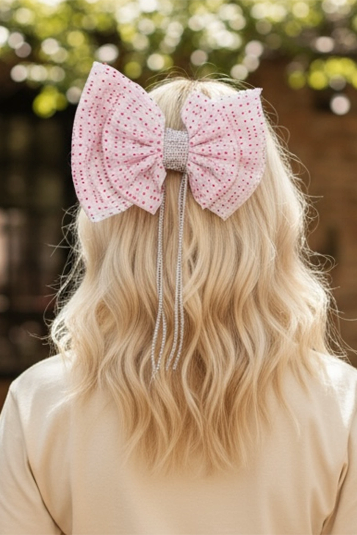 Pembe Renk Kurdele Figürlü İnci Detaylı Otomat Toka