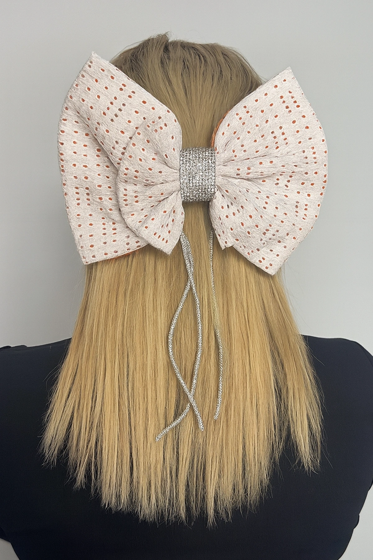 Beyaz Ve Turuncu Renk Kurdele Figürlü Taş Detaylı Otomat Toka