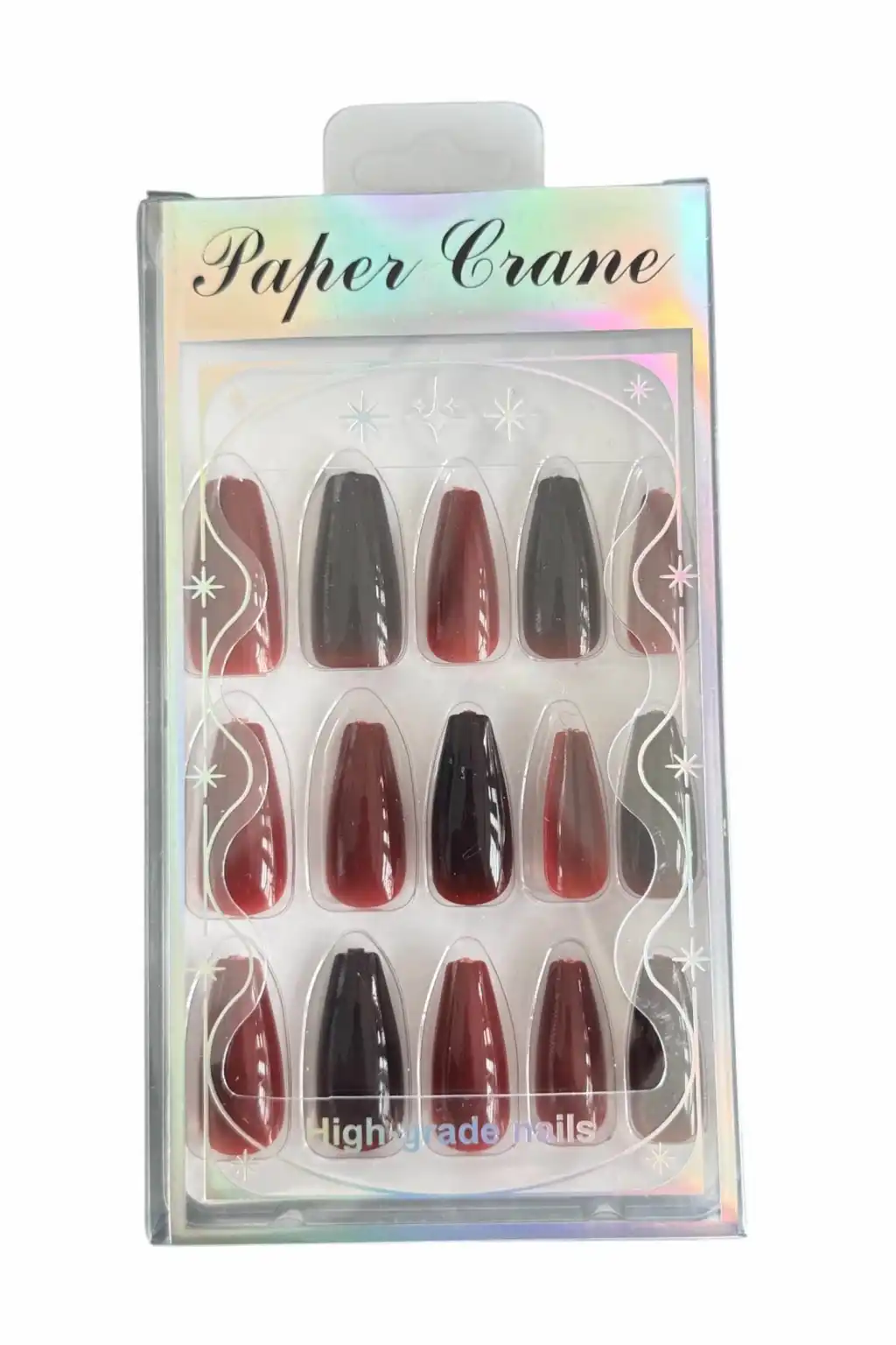 Zarif ve kendinden cilalı takma tırnaklar, etkileyici bir görünüm sağlar.