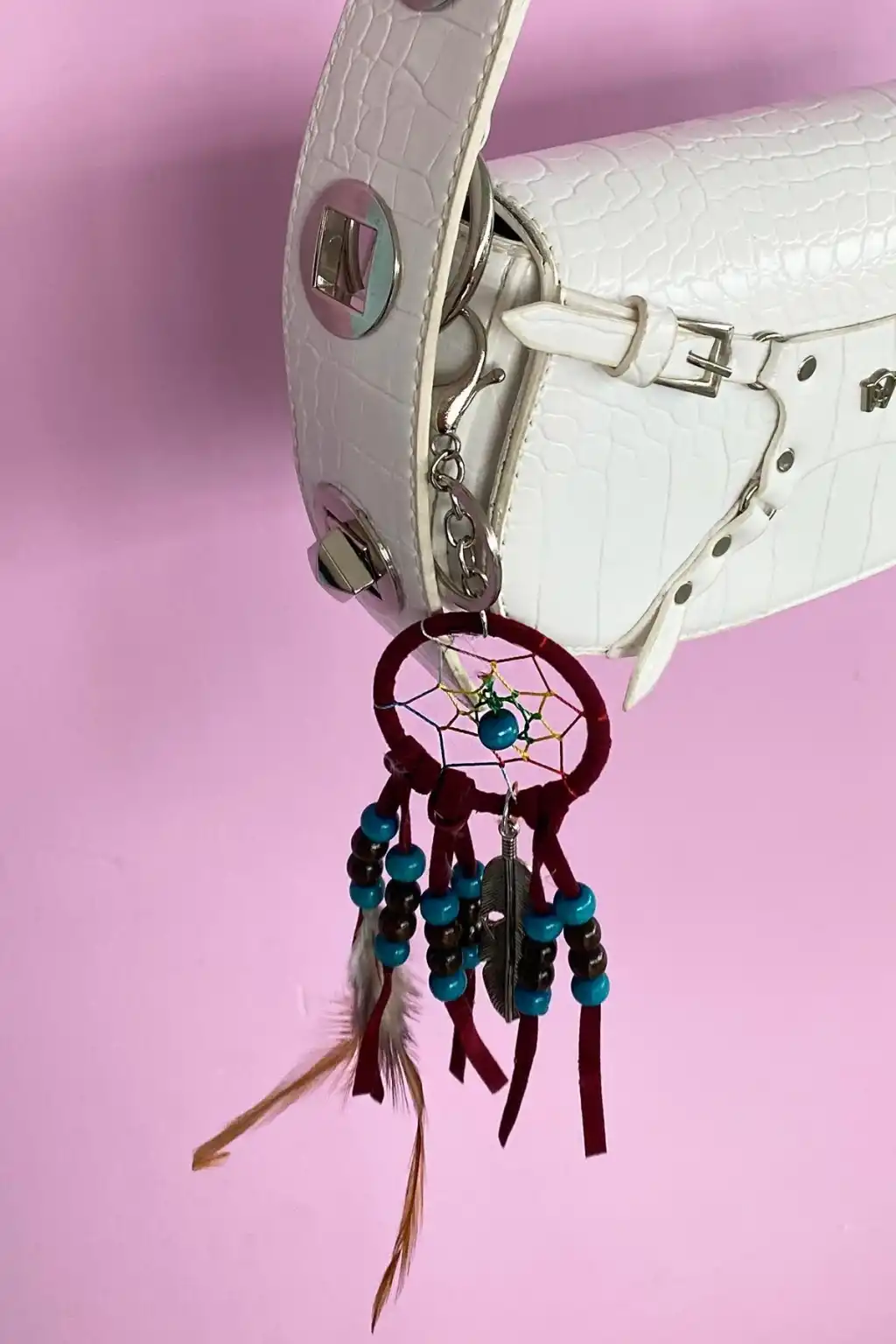 Bordo Renk Boncuklu Rüya Kapanı Detaylı Anahtarlık