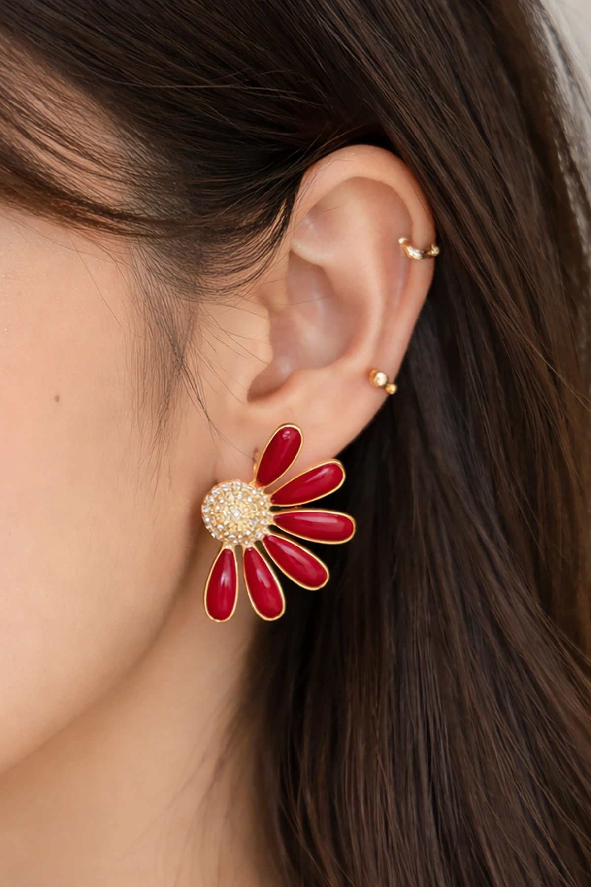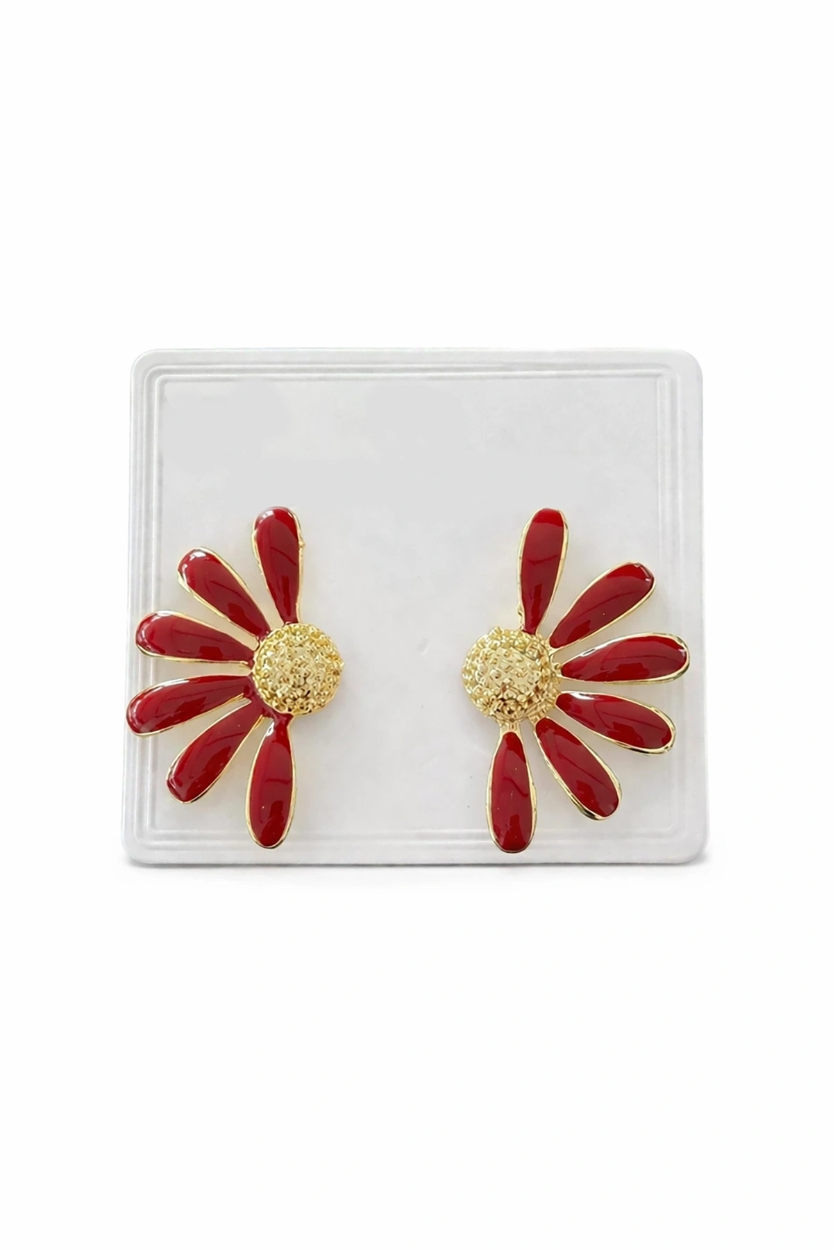 Bordo Renk Çiçek Figürlü Küpe (Çift)