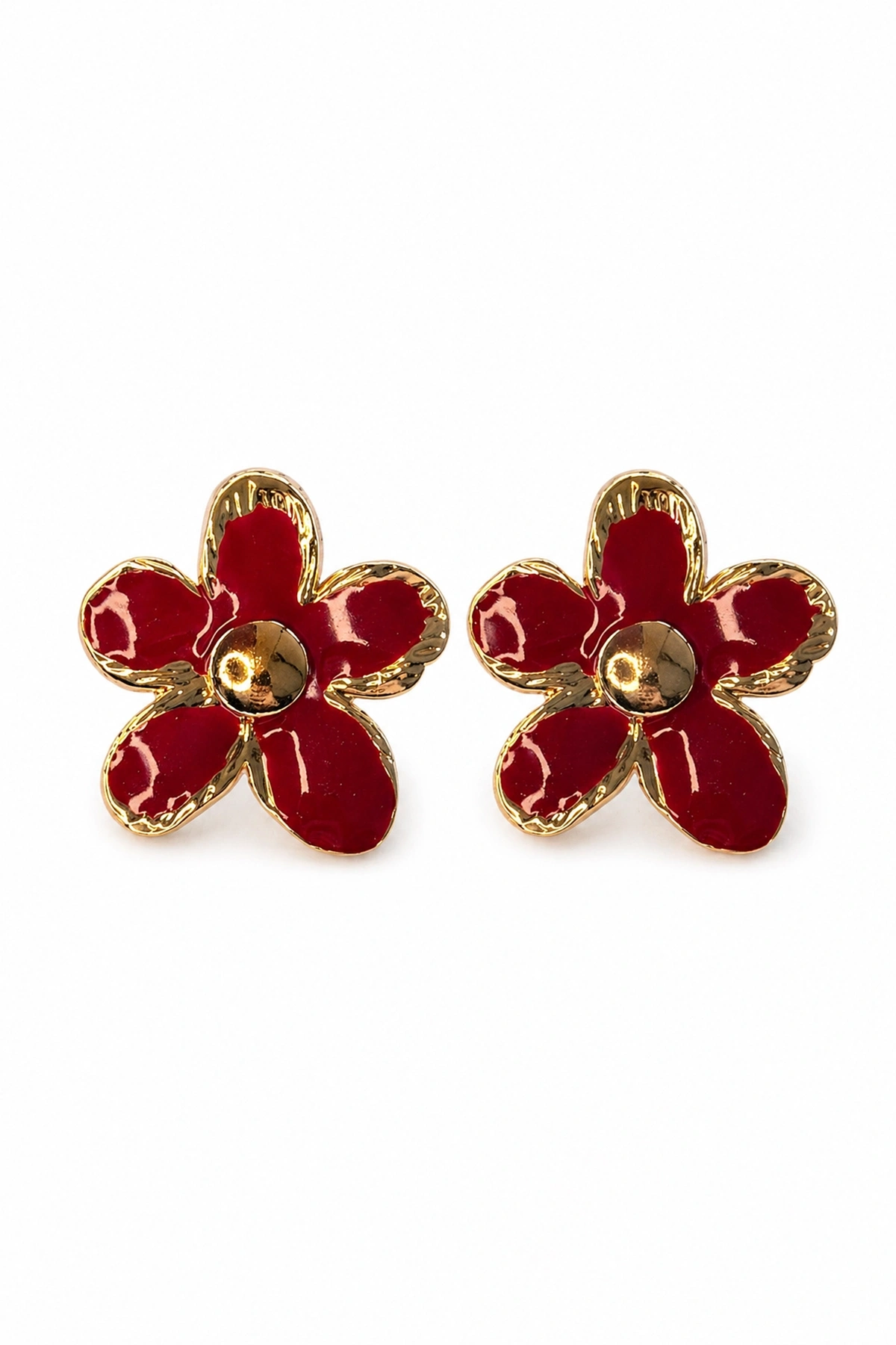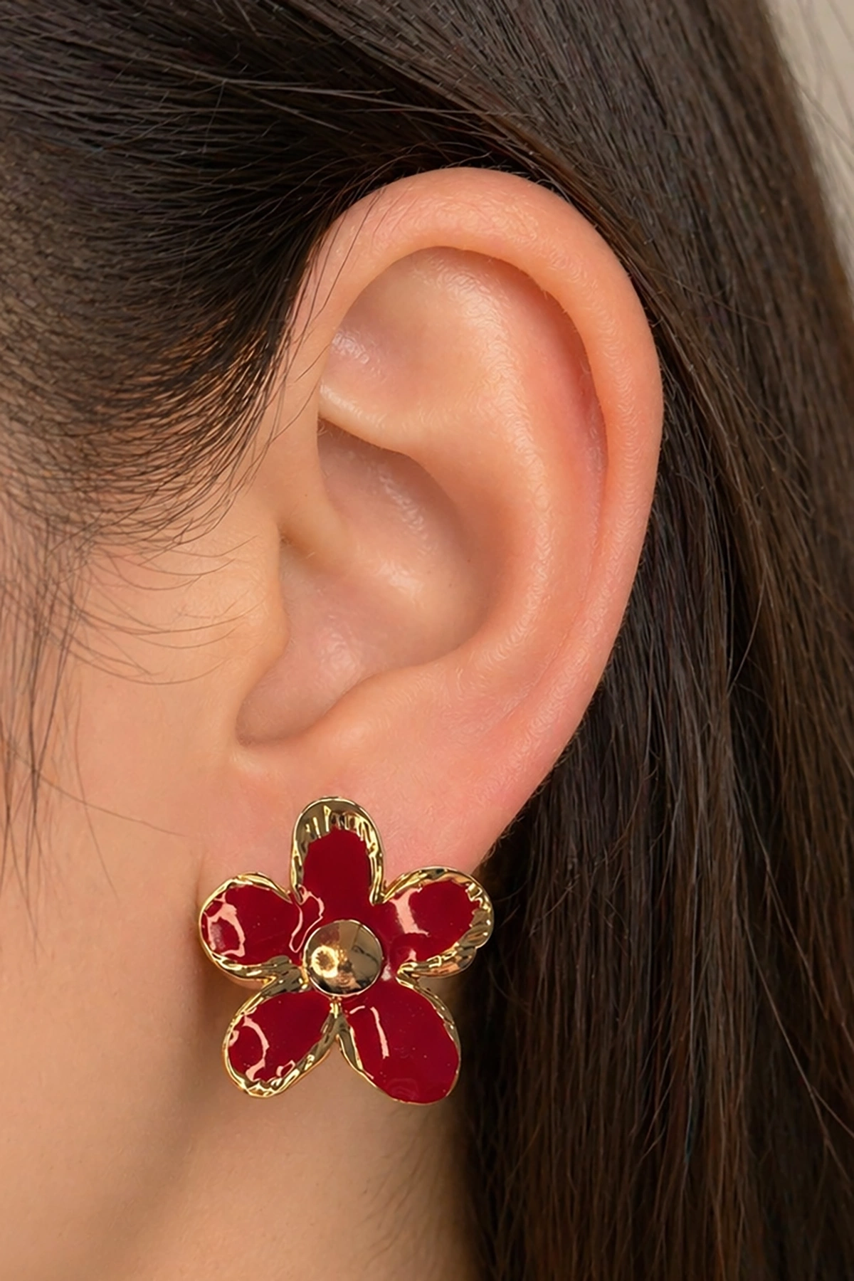 Bordo Renk Çiçek Figürlü Küpe (Çift)