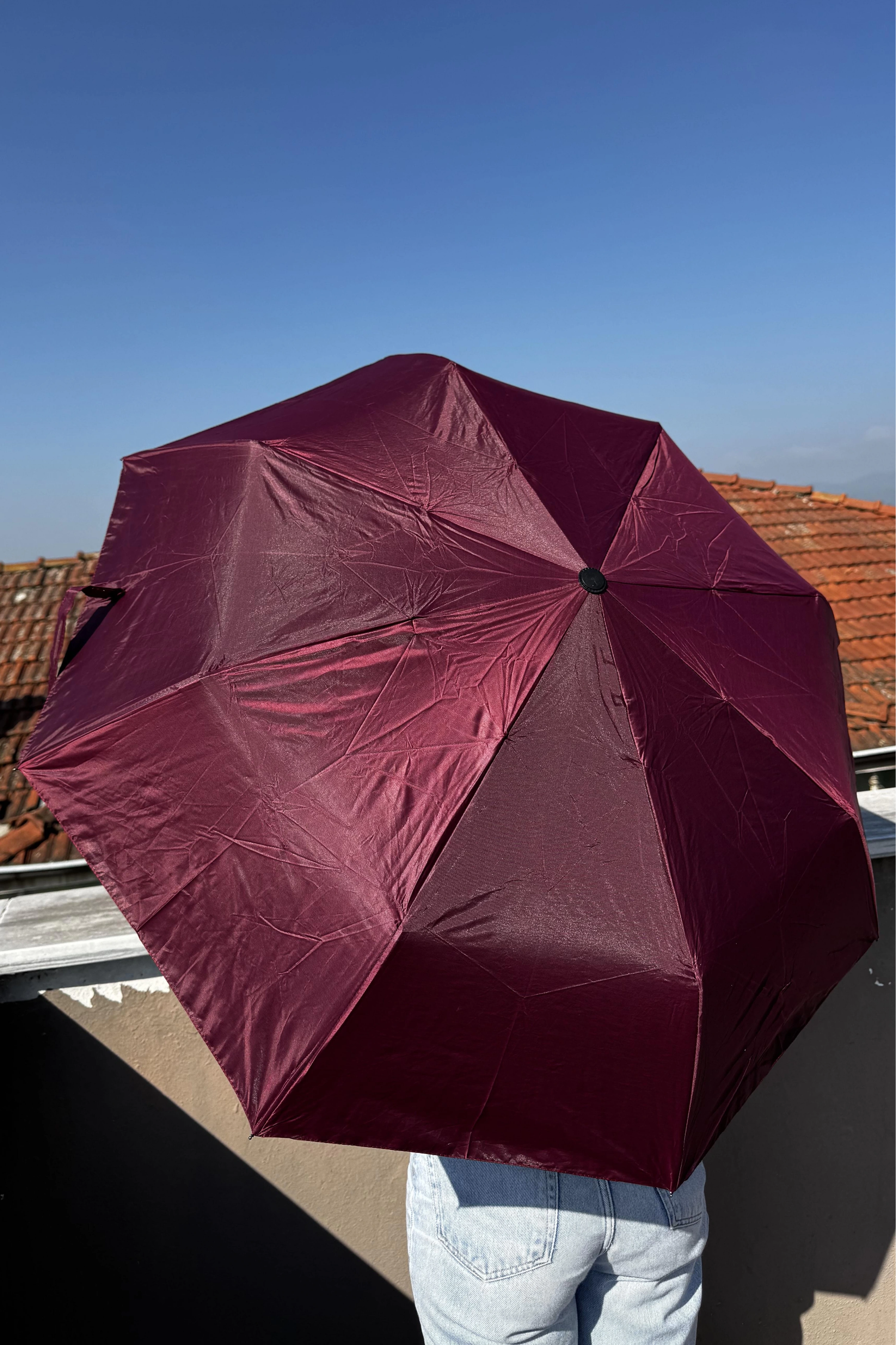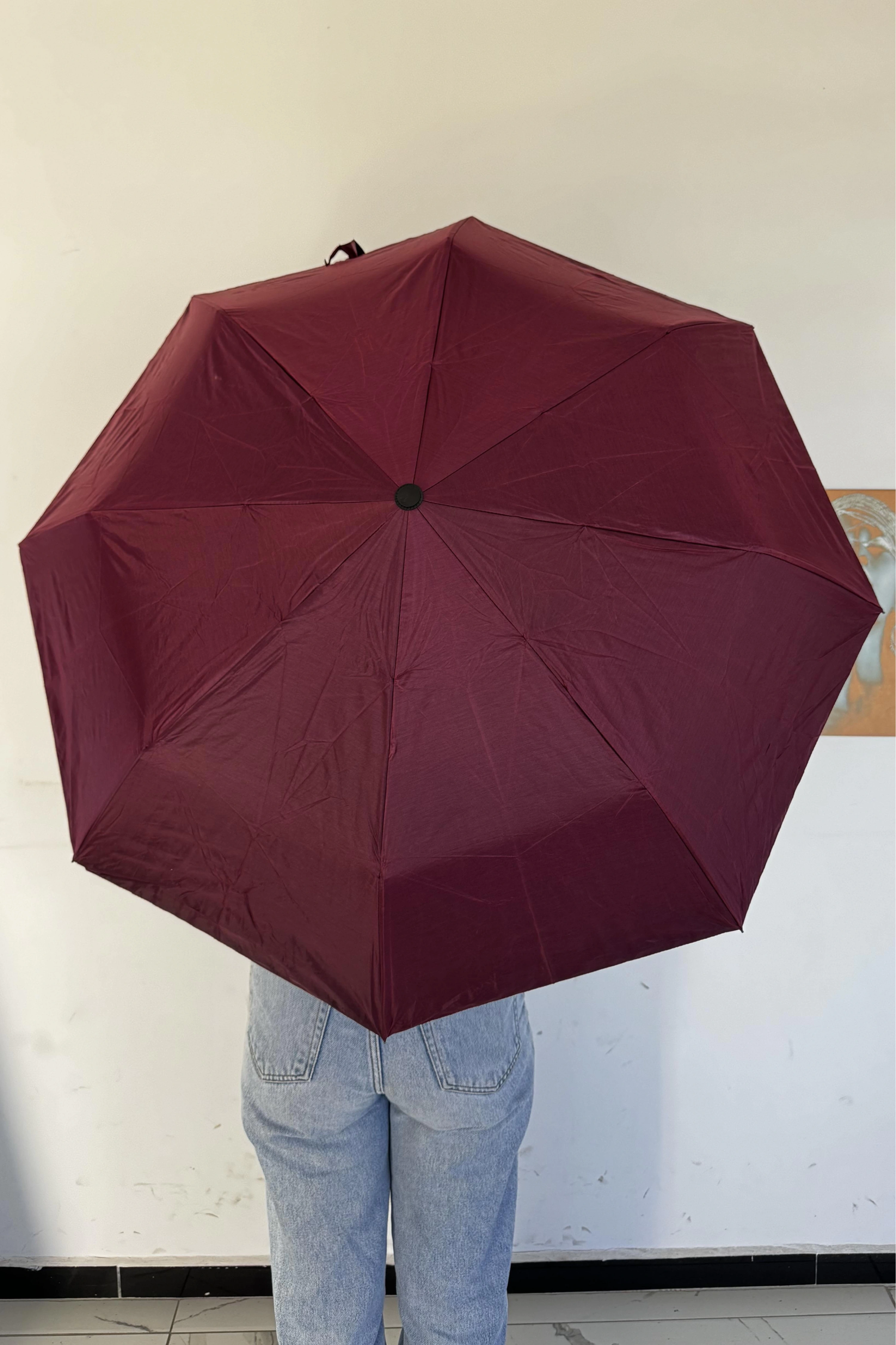 Bordo Renk Katlanabilir Şemsiye