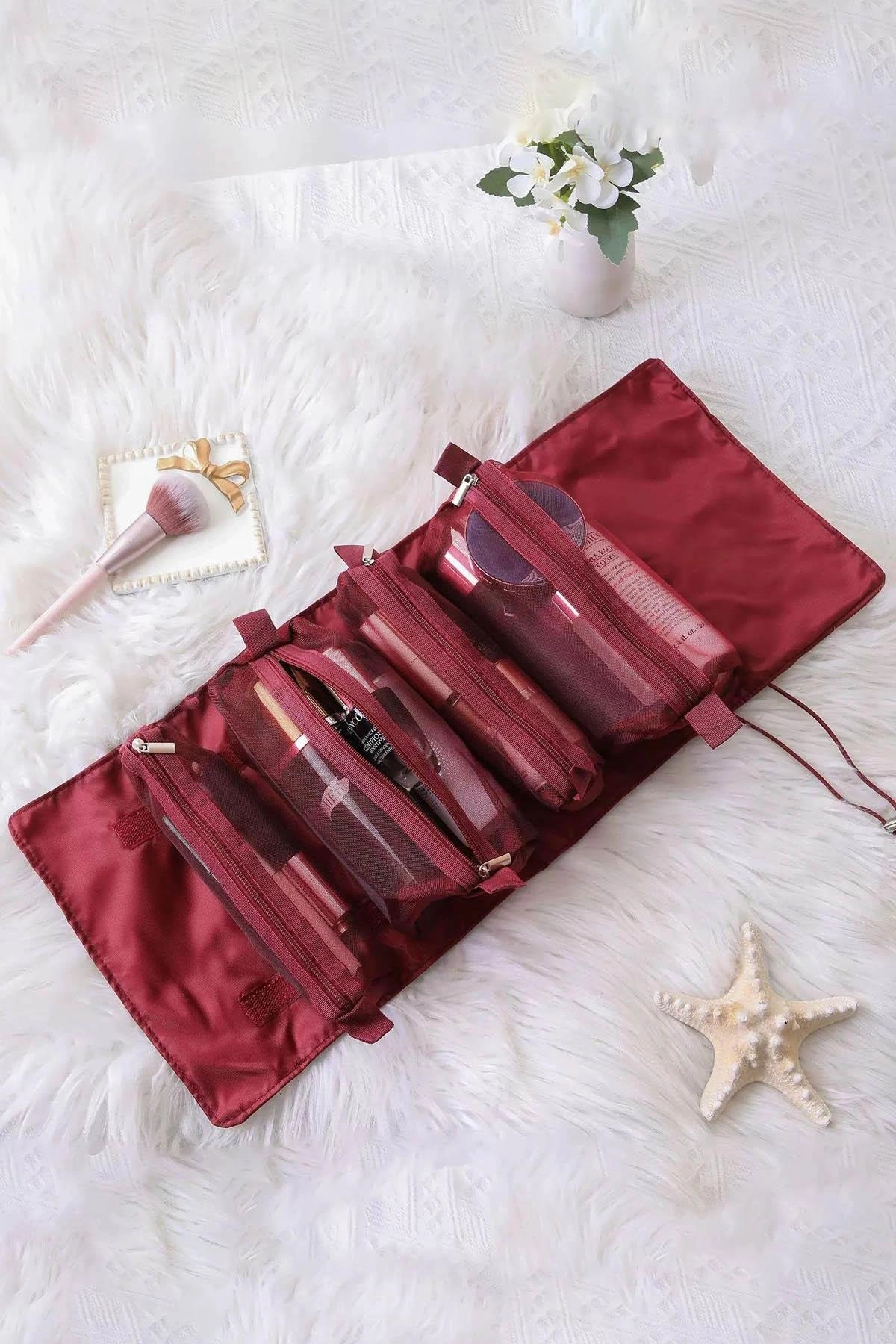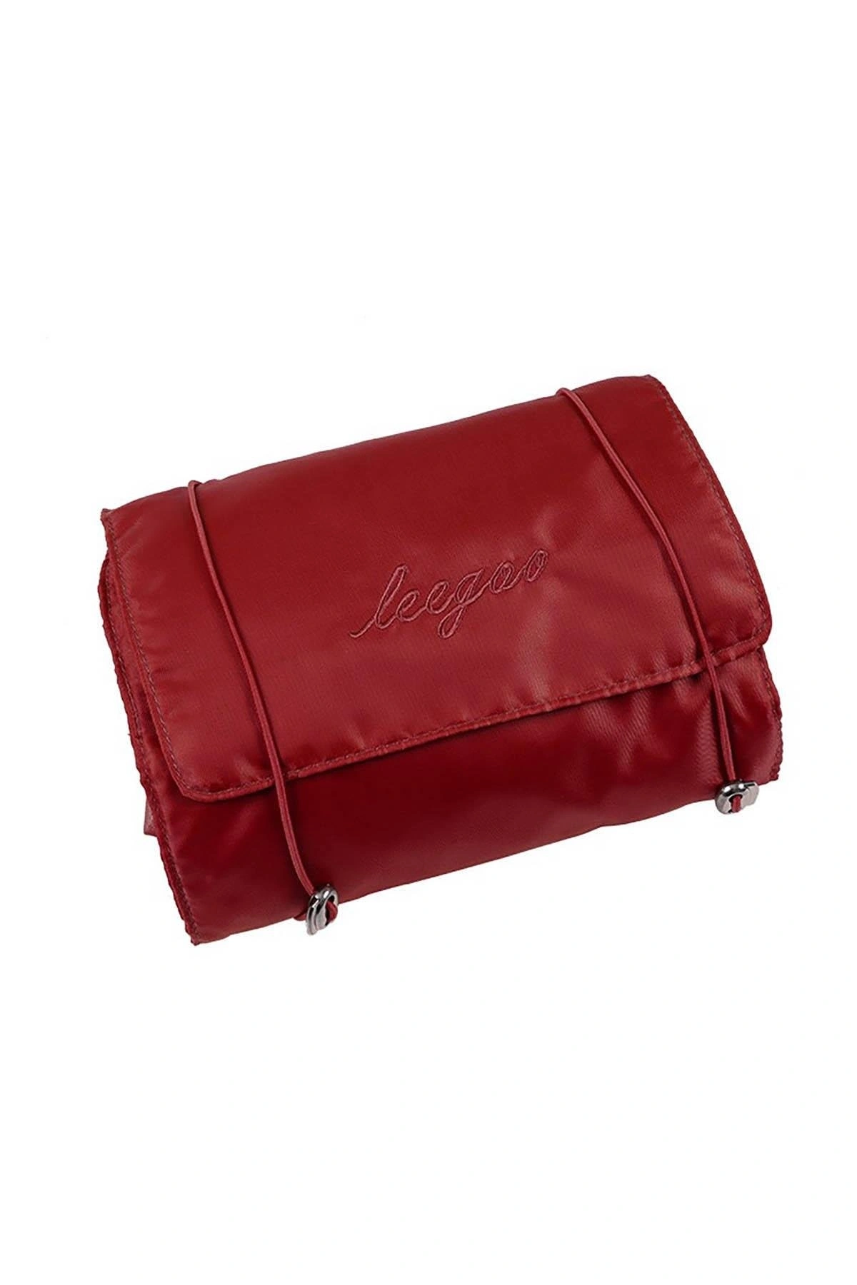 Bordo Renk Kozmetik Kişisel Bakım Rulo Haline Gelen Çanta