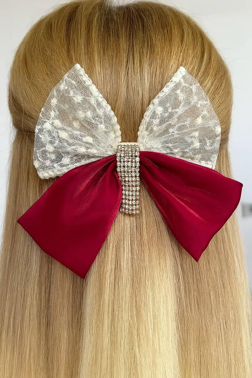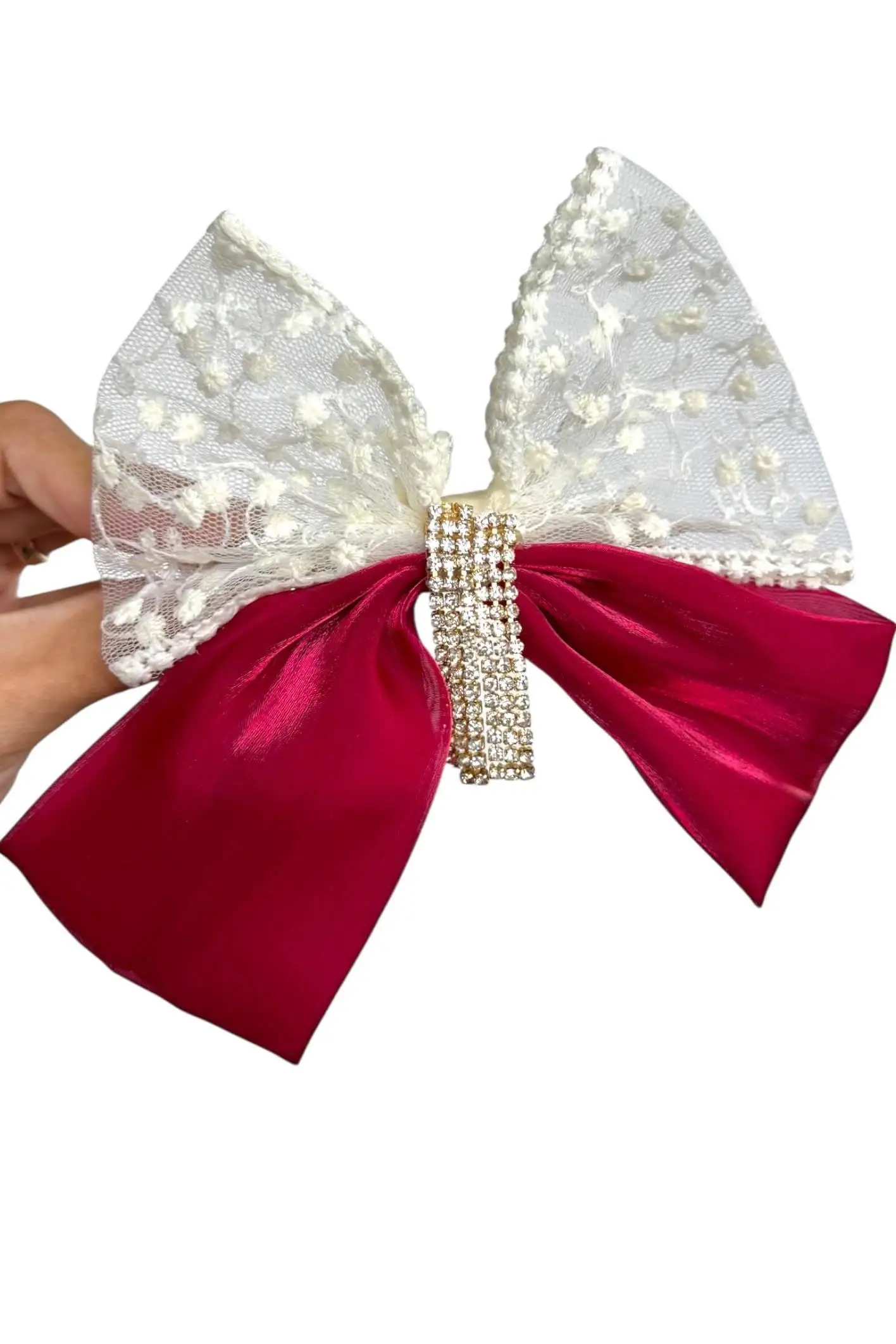 Bordo Renk Kurdele Figürlü İnci Ve Taş Detaylı Otomat Toka