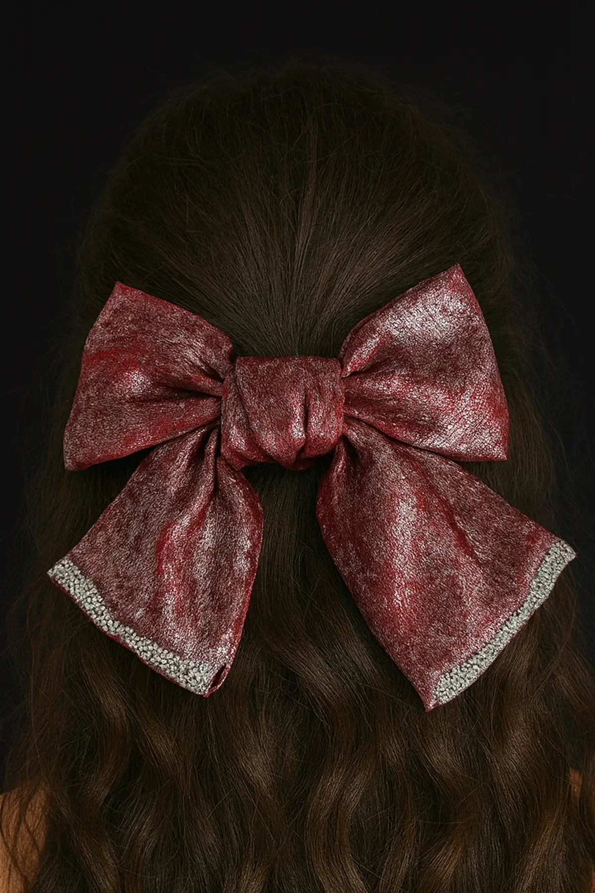 Bordo Renk Taş Detaylı Kurdele Figürlü Otomat Toka