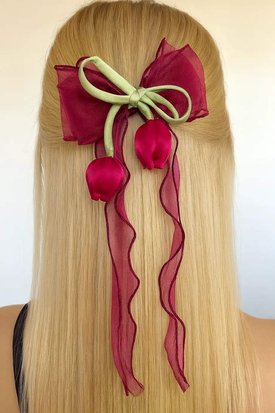 Karışık Renk Lale Figürlü Kurdele Otomat Toka