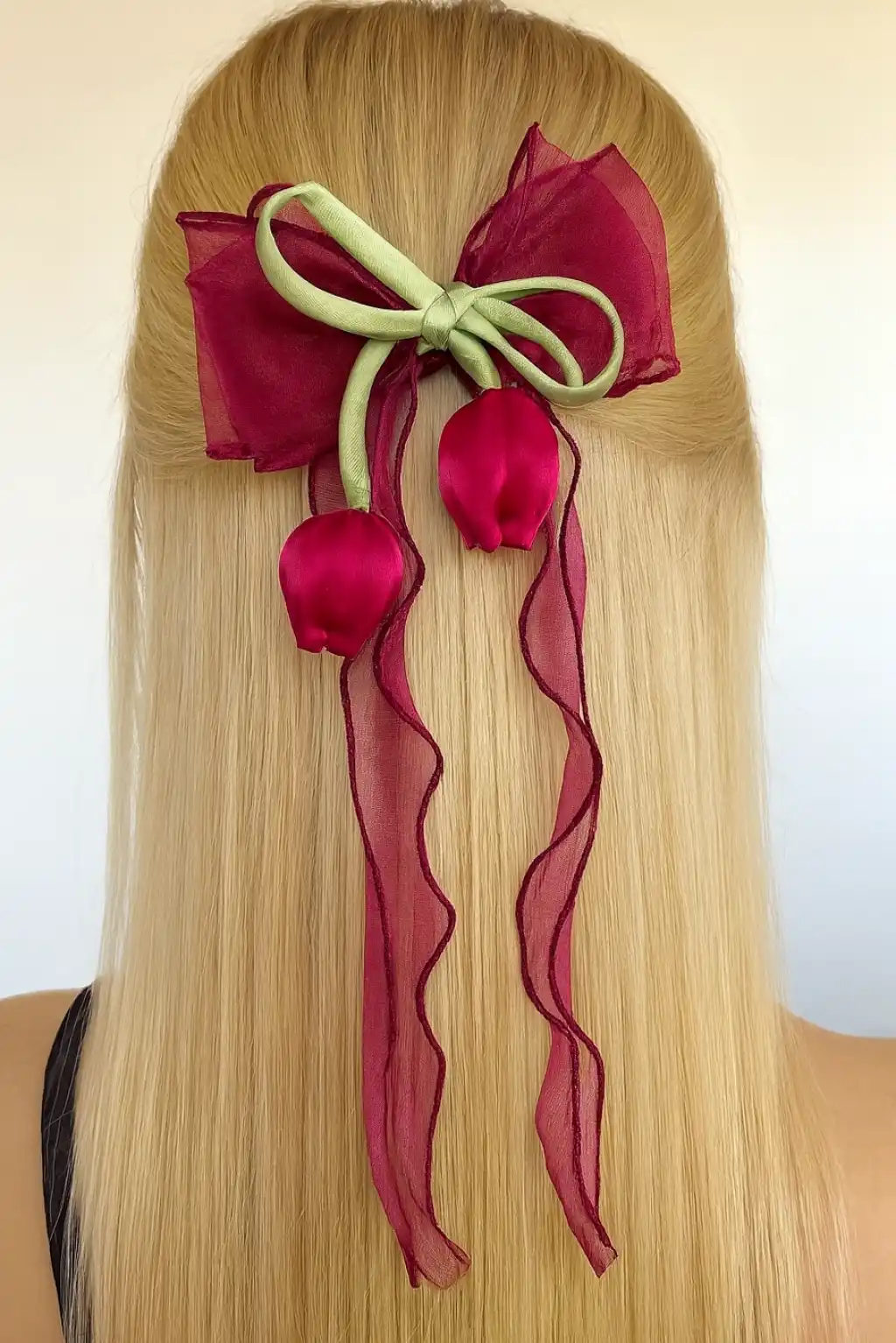 Kırmızı Renk Kurdele Figürlü Taş Detaylı Otomat Toka