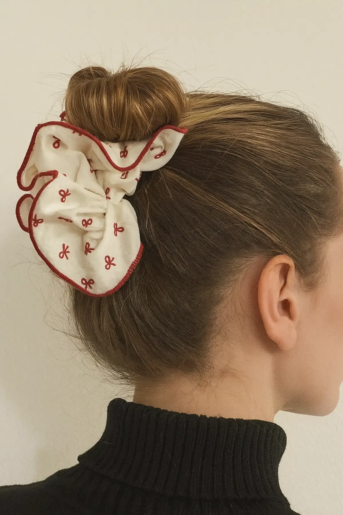 Bordo Ve Beyaz Renk Kurdele Figürlü Simit Toka
