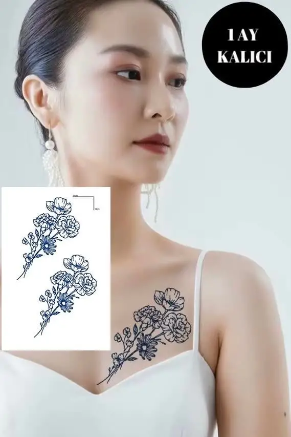 Çiçek Figürlü 12 Saat Sonra Kararan Geçici Orta Dövme Tattoo