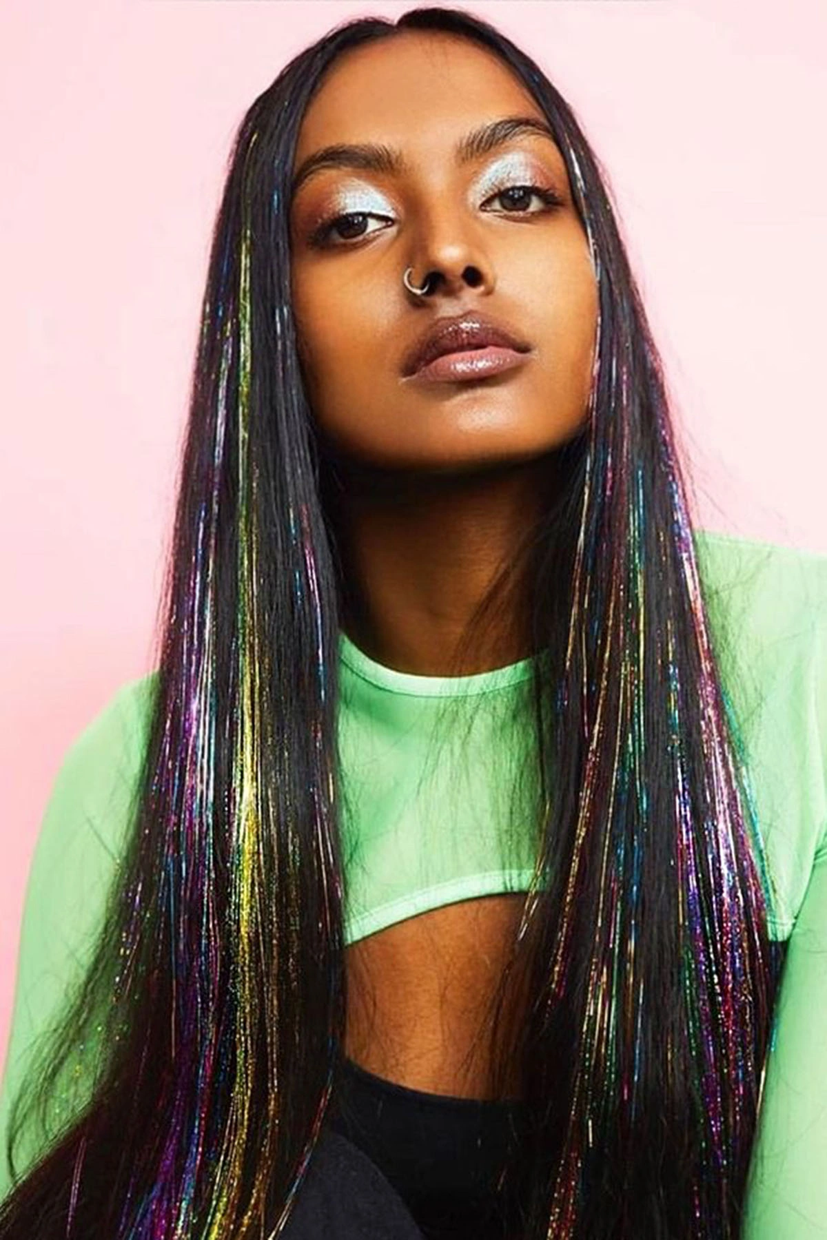 Karışık Renk Simli Yan Postiş Hair Tinsel Shiny Hair (50 Cm)