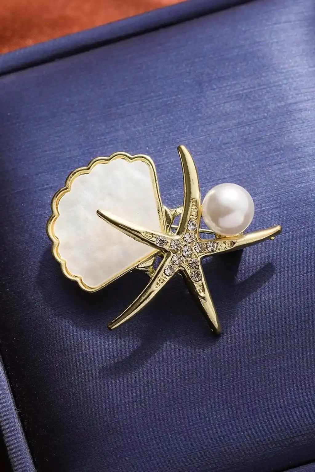 Altın Renk Yıldız Figürlü Taşlı Broş