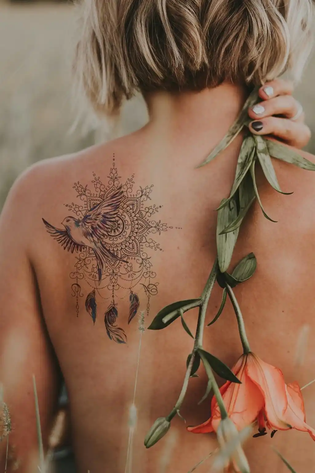 Boyut : 15*21 cm. Ürünün boyutuna göre vücudunuzda istediğiniz bölgeye uygulayabilirsiniz. Ağırlık : 9 gr. Kalıcılık süresi cildinizin yağlı ve kuru olmasına göre değişkenlik göstermektedir. Paket içeriği görselde görünenin birebir aynısıdır. **Nemli, güneş ışığına veya klimaya maruz kalan açılmış paketler bozulma yapmaktadır. Dövme yapılışı Uygulama yapacağınız bölgenin temiz, kuru, kremsiz ve yağsız olmasına dikkat ediniz. Kıl, tüy gibi dövmenin yapışmasını engelleyici unsur olmadığına emin olun. Dövmenin tam olarak hangi bölgeye uygulayacağının belli olması için renkli kısıma mümkün olan en yakın kısımdan kesin. Üzerindeki jelatini çıkartın ve dövme cildinize bakacak şekilde yapıştırın. Birkaç saniye kâğıdın üzerine ıslak havlu veya ıslak bezle bastırın. Bu arada kağıdı kaydırmamaya dikkat edin. Kâğıdı cildinizden kaldırın. Dövmeniz hazır. Lütfen dövme cildinizde kaldığı sürece ovalamayın. Uygulamanın ardından 20 dk. cildinizi germeyin ve kurumasını bekleyin. Çıkarmak isterseniz bebek yağı, zeytinyağı veya ıslak mendillerle ovalayın. Güle Güle Kullanın...