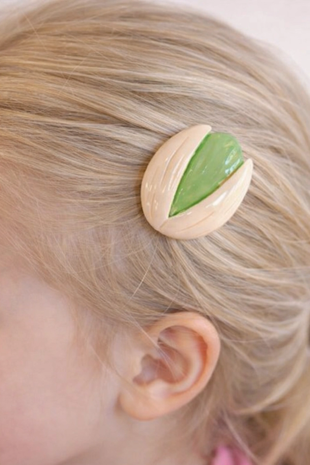 Yeşil Renk Kelebek Figürlü İnci Detaylı Çocuk Yan Toka