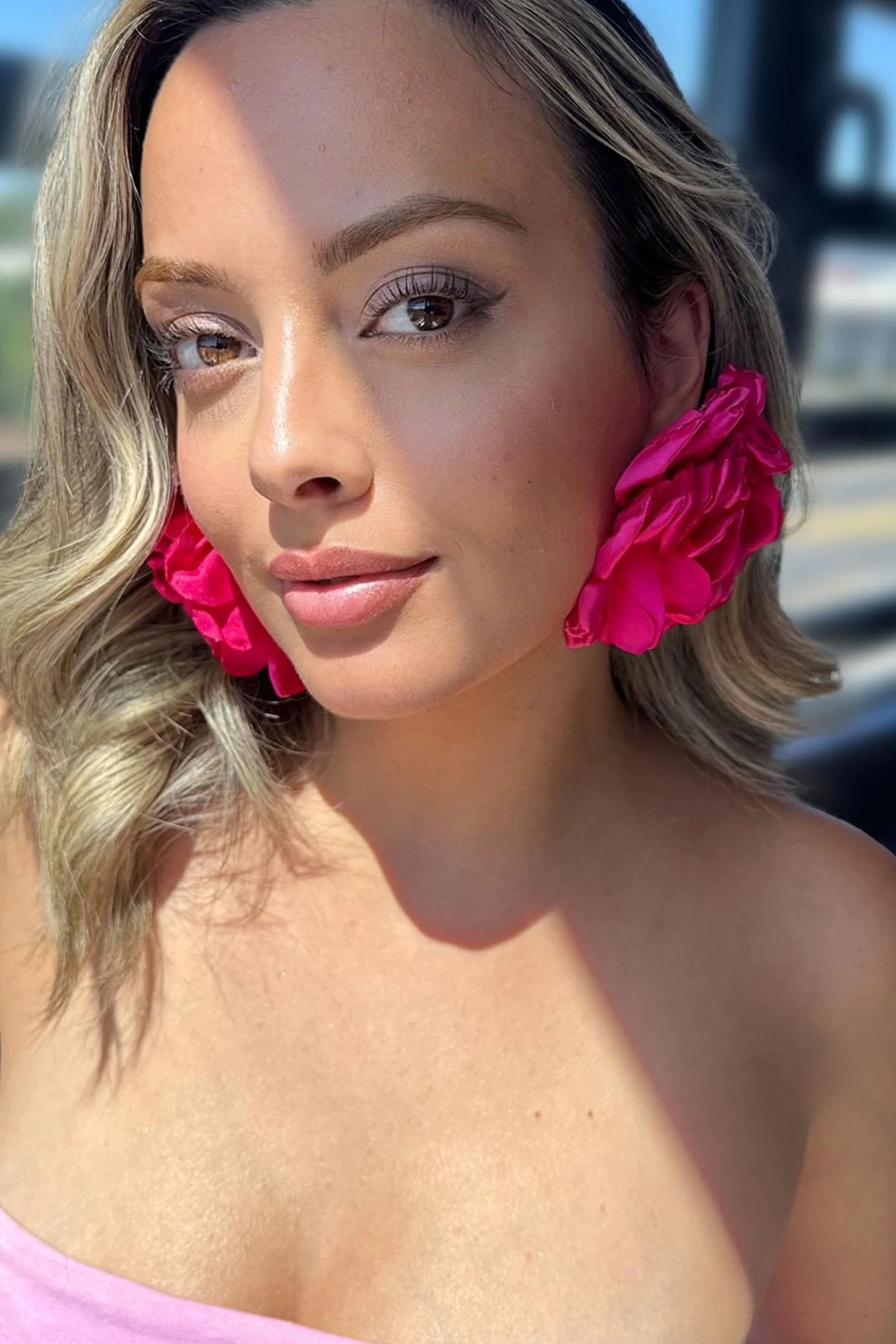 Fuşya Renk Çiçek Figürlü Küpe (Çift)
