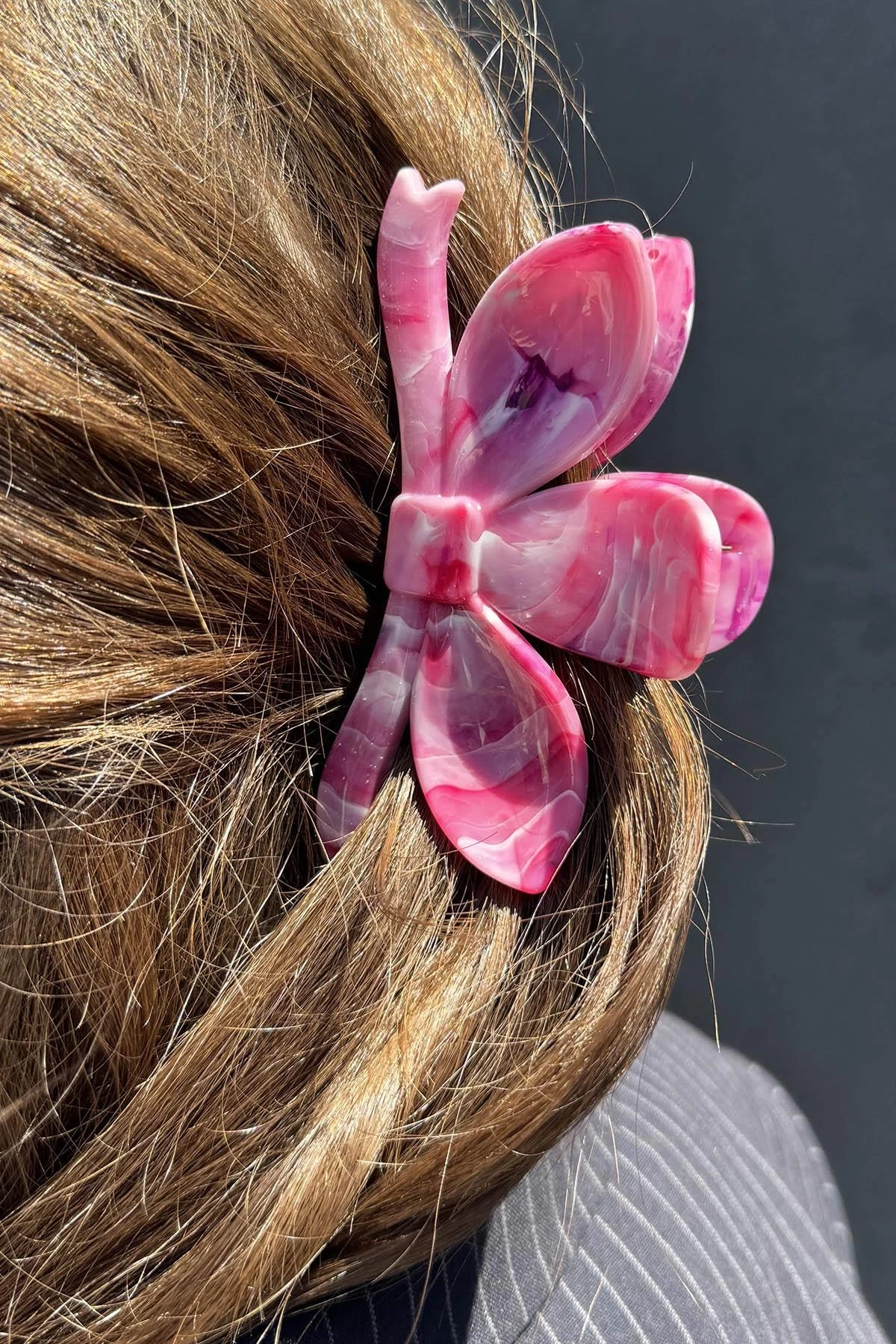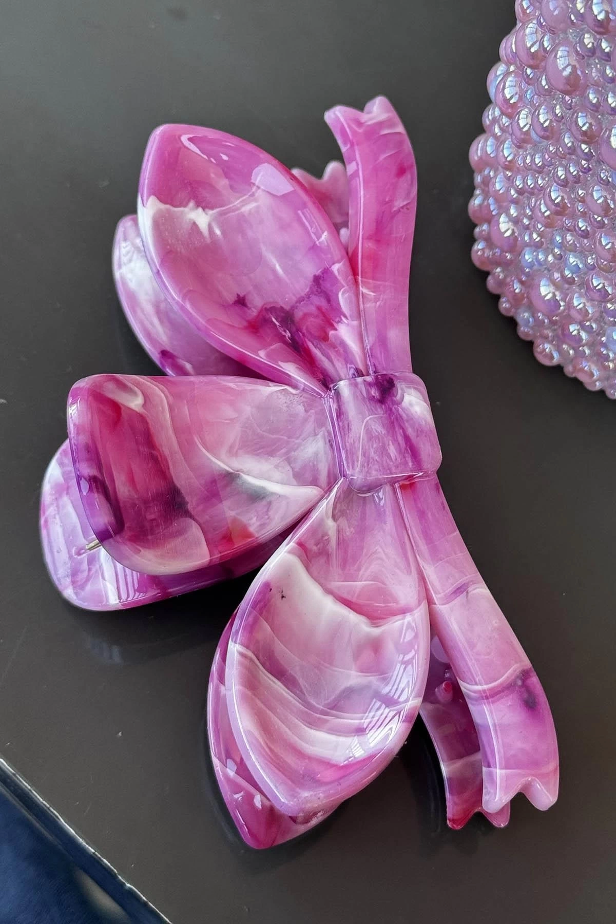 Fuşya Renk Mermer Desenli Kemik Mandal Toka