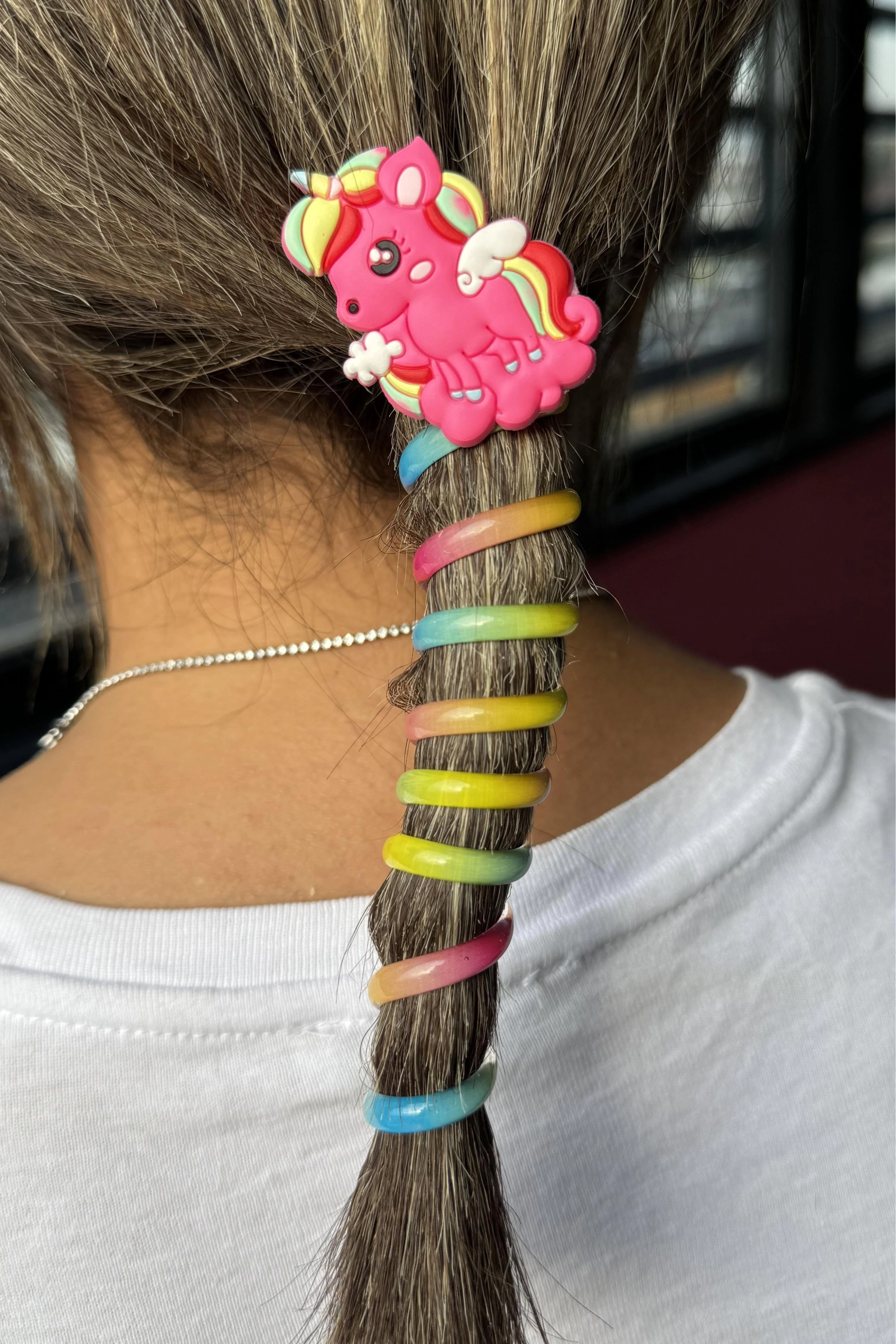 Fuşya Renk Unicorn Figürlü Yaylı Spiral Toka