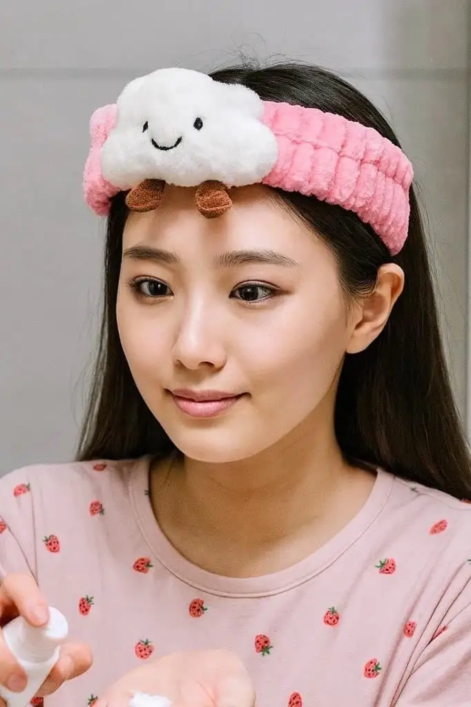 Pembe Ve Beyaz Renk Bulut Figürlü Peluş Saç Bandık