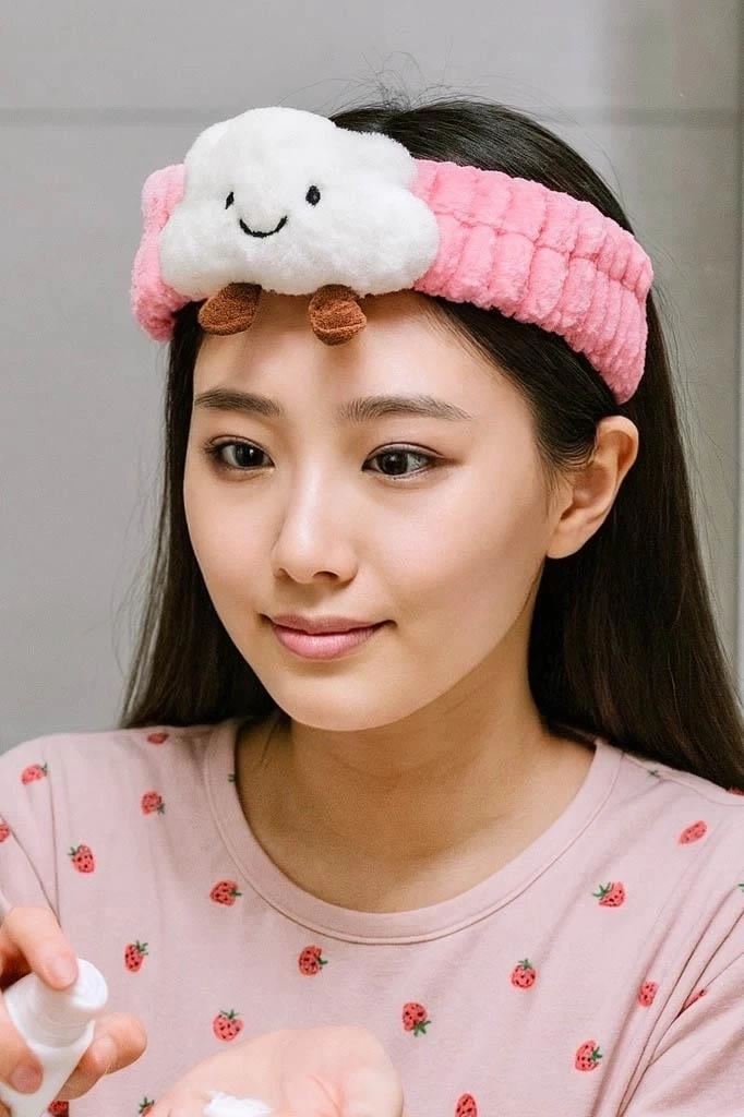 Fuşya Ve Beyaz Renk Bulut Figürlü Peluş Saç Bandı
