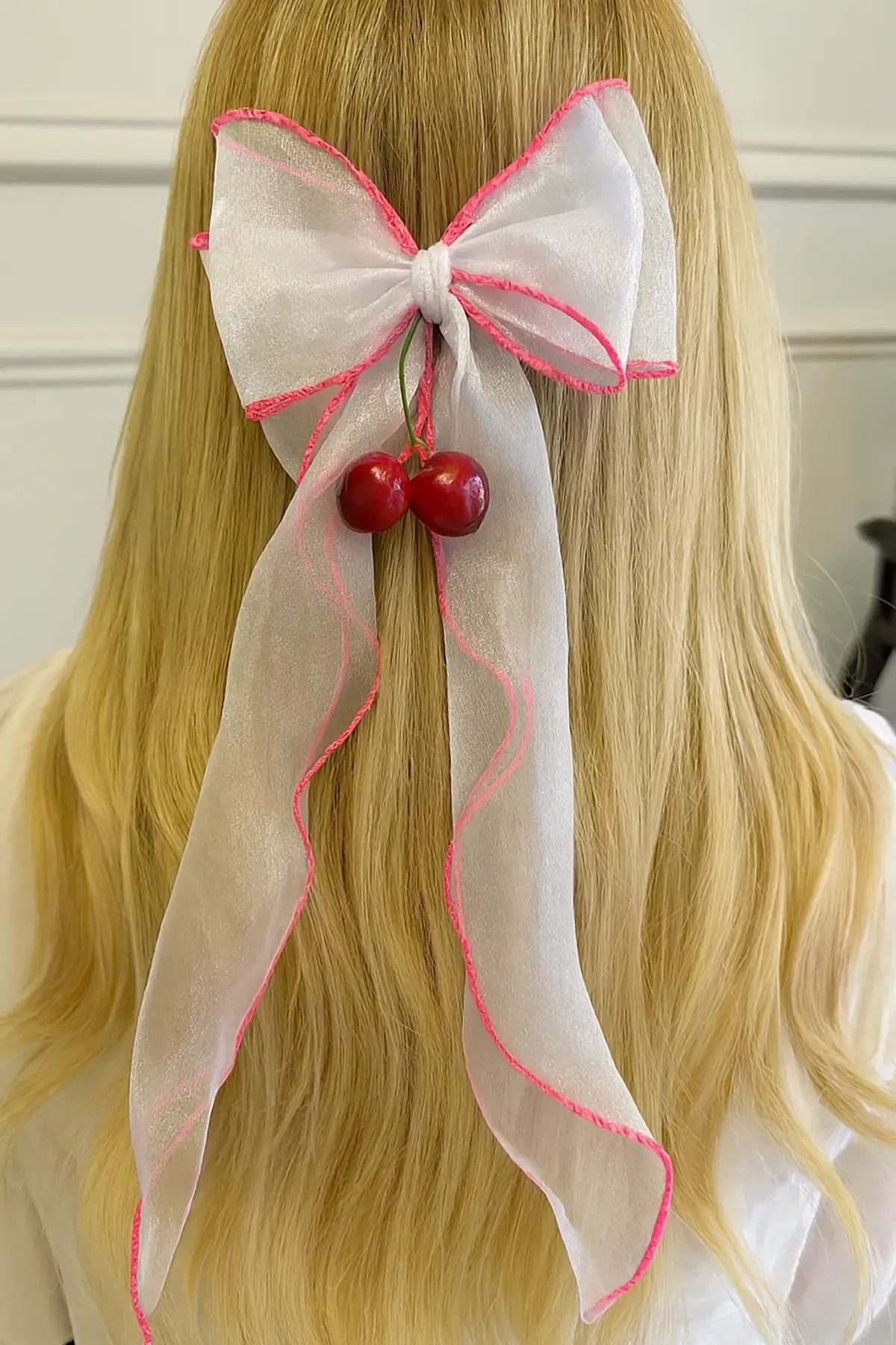 Beyaz Ve Pembe Renk Kiraz Figürlü Otomat Toka