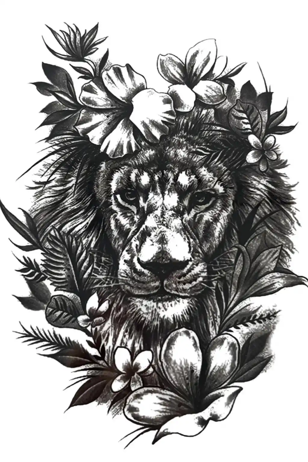 Geçici Aslan Ve Çiçek Figürlü Dövme Tattoo