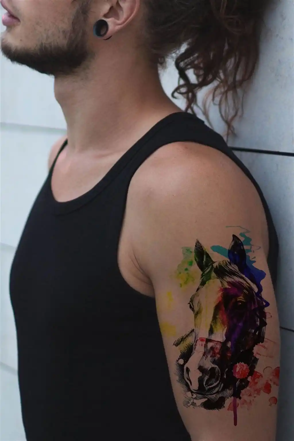 Uygulama yapacağınız bölgenin temiz, kuru, kremsiz ve yağsız olmasına dikkat ediniz. Kıl, tüy gibi dövmenin yapışmasını engelleyici unsur olmadığına emin olun. Dövmenin tam olarak hangi bölgeye uygulayacağının belli olması için renkli kısıma mümkün olan en yakın kısımdan kesin. Üzerindeki jelatini çıkartın ve dövme cildinize bakacak şekilde yapıştırın. Birkaç saniye kâğıdın üzerine ıslak havlu veya ıslak bezle bastırın. Bu arada kağıdı kaydırmamaya dikkat edin. Kâğıdı cildinizden kaldırın. Dövmeniz hazır. Lütfen dövme cildinizde kaldığı sürece ovalamayın. Uygulamanın ardından 20 dk. cildinizi germeyin ve kurumasını bekleyin. Çıkarmak isterseniz bebek yağı, zeytinyağı veya ıslak mendillerle ovalayın. Güle Güle Kullanın...