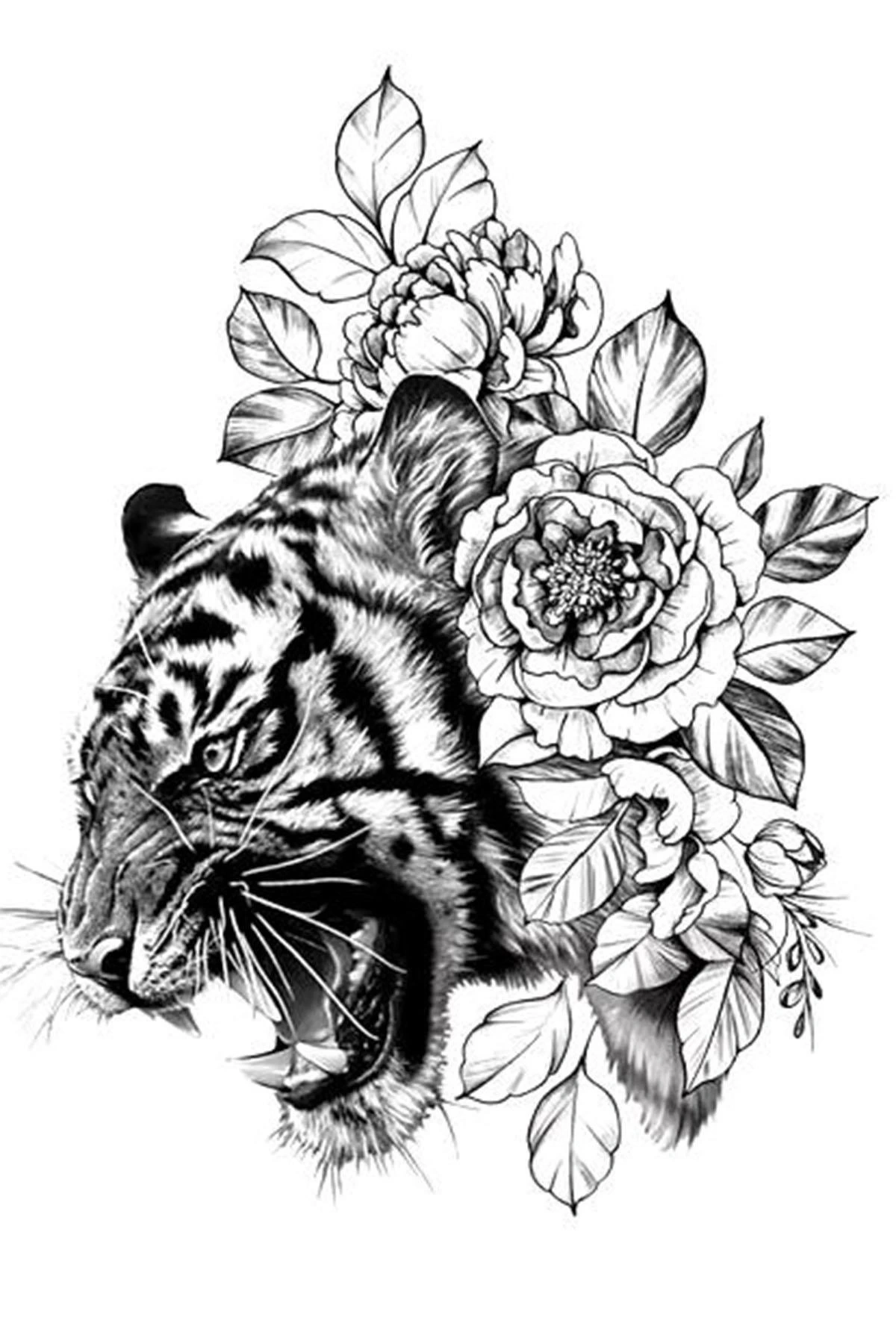 Geçici Çiçek Ve Aslan Figürlü Dövme Tattoo